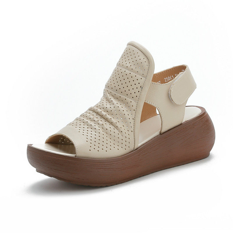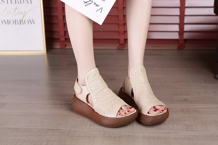 淘宝087软底真皮凉鞋厚底松糕鞋镂空皮鞋原创复古鞋防滑夏新款魔术贴