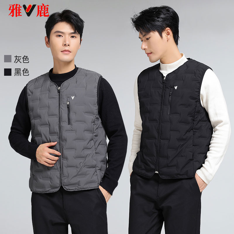 2025男士简约立领羽绒马甲宽松休闲轻型加厚外穿90白鸭绒背心冬季
