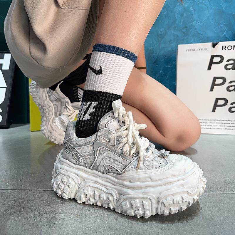 淘宝女鞋2025年秋冬系带新款做旧老爹鞋女韩版厚底增高加绒运动休闲鞋