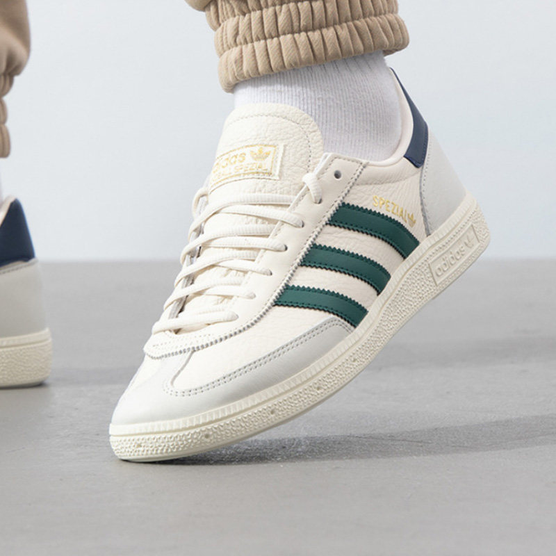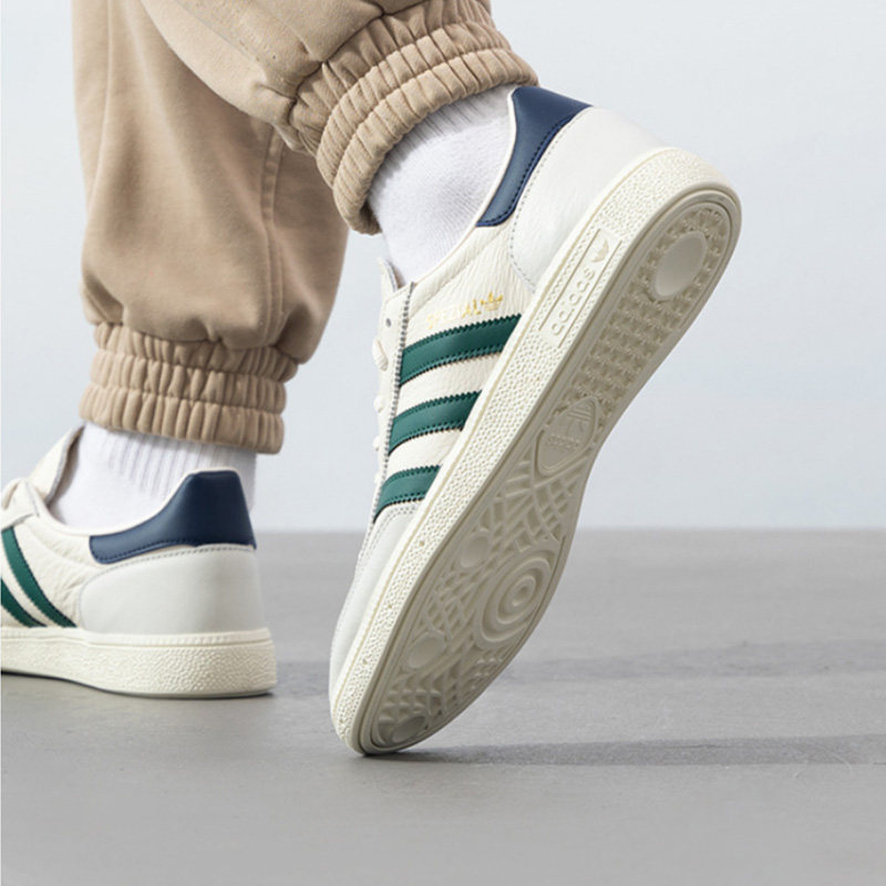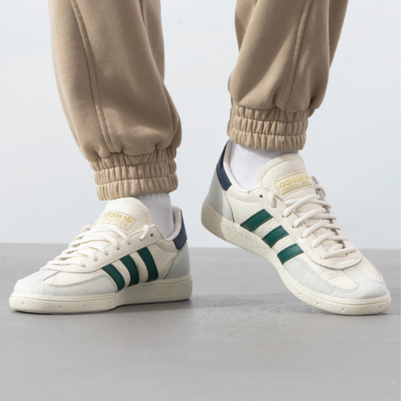 Adidas阿迪达斯三叶草2025春季新款HANDBALL休闲鞋(型号JH5451)融合经典复古与现代潮流,男女同款设计,适合日常穿搭。鞋身采用高品质皮革与透气网布拼接,质感出众且轻盈舒适。经典三叶草Logo点缀鞋侧,彰显品牌辨识度。低帮造型搭配加厚缓震中底,提供出色脚感与支撑力。复古手球鞋灵感结合当下流行元素,配色清新百搭,轻松驾驭街头、运动或休闲场景。无论是搭配牛仔裤、运动裤还是裙装,都能展现时尚态度。JH5451不仅是一双鞋,更是个性与品味的象征,为2025春季注入活力与风格。