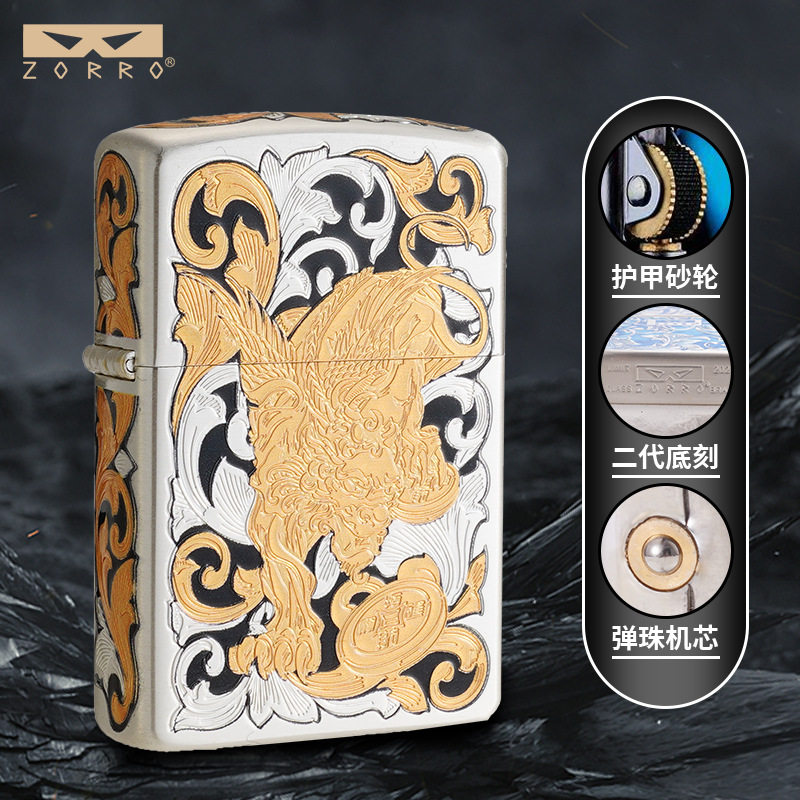 淘宝二代佐罗Z2-1169银黑金唐草貔貅煤油打火机防风个性高档