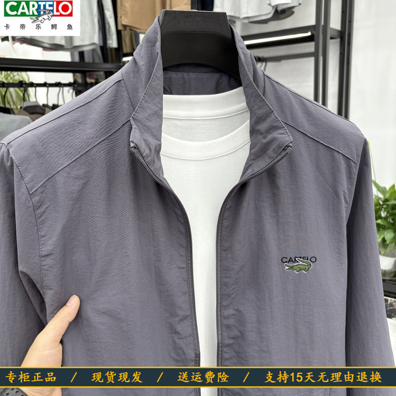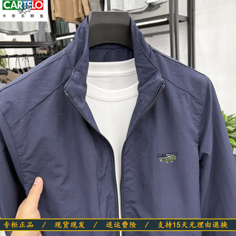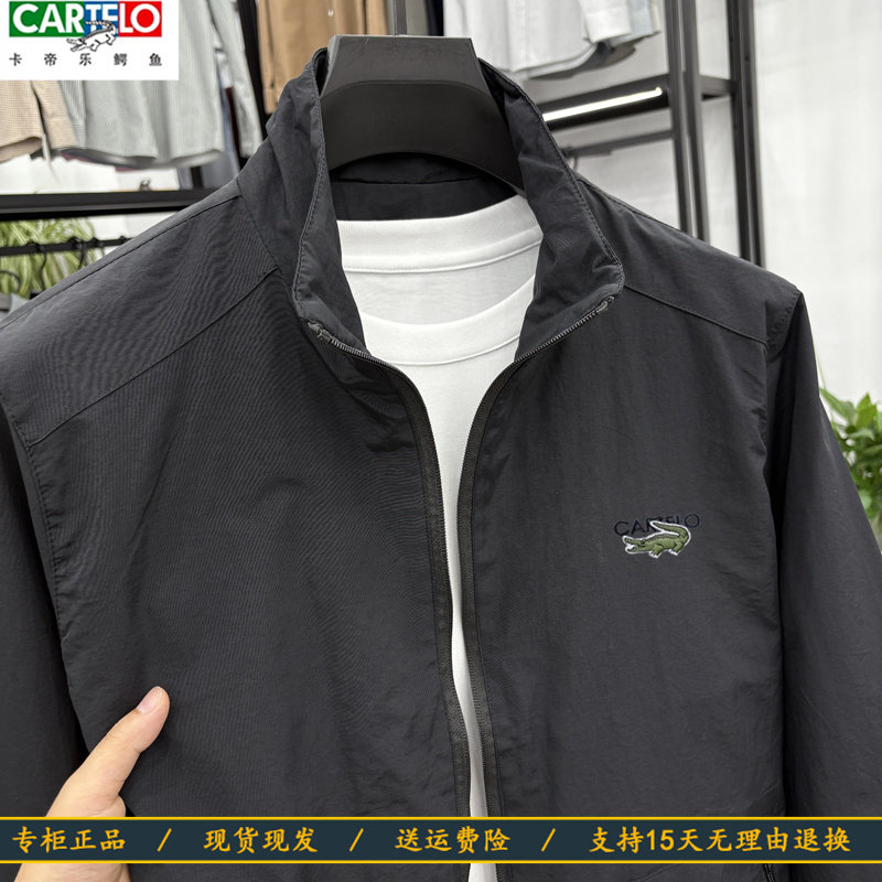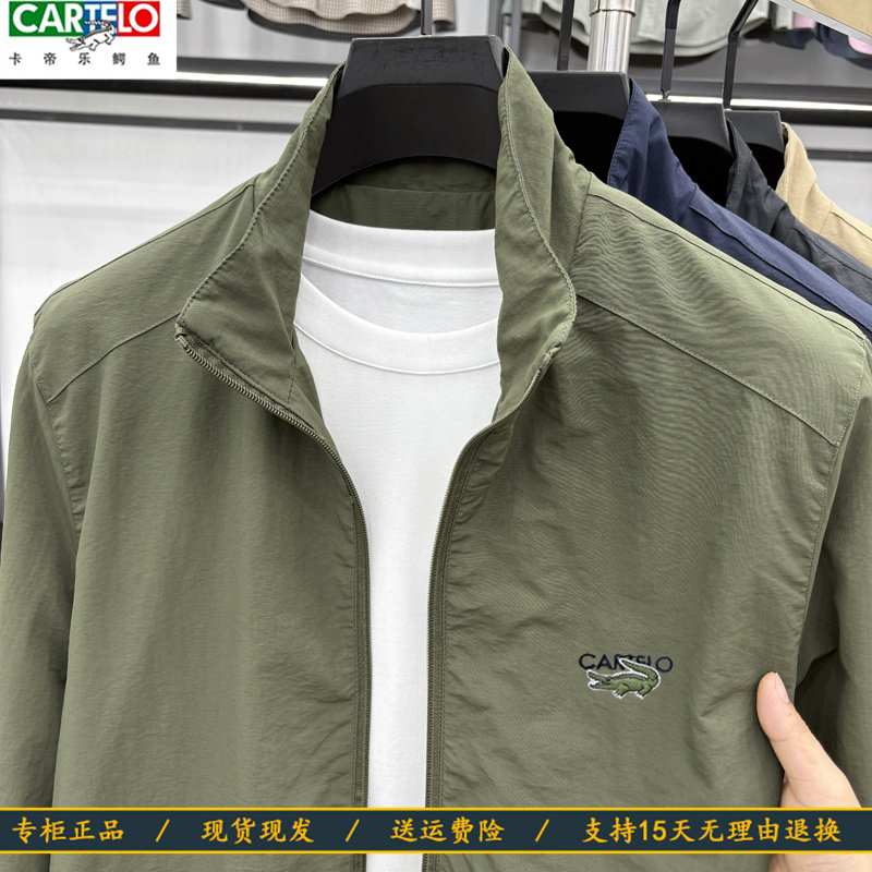 淘宝CARTELO鳄鱼男士秋冬新款通勤夹克衫大码加绒外套拉链上衣防风衣