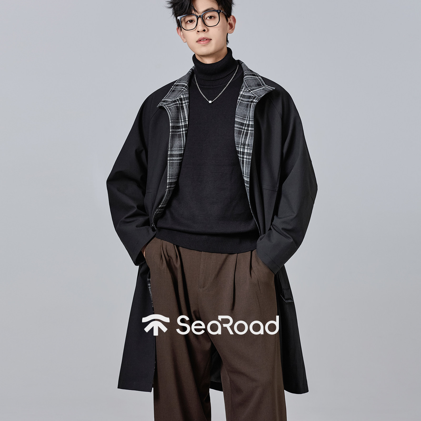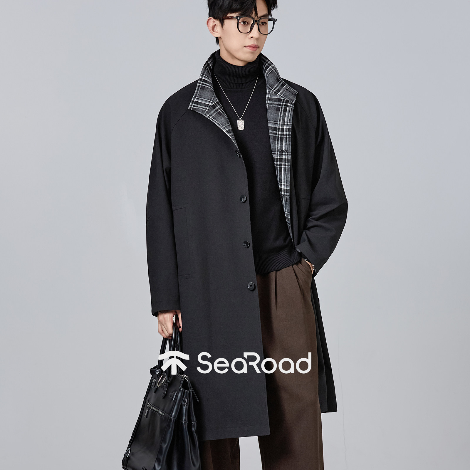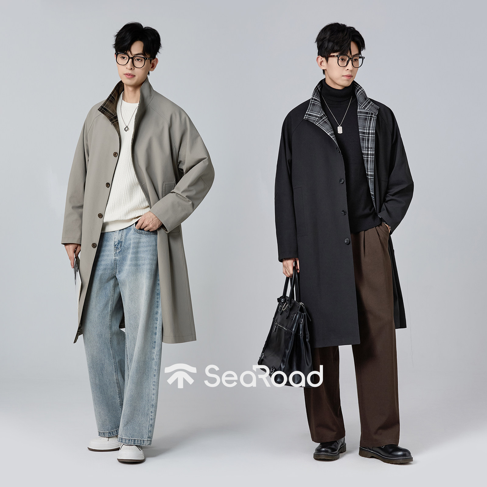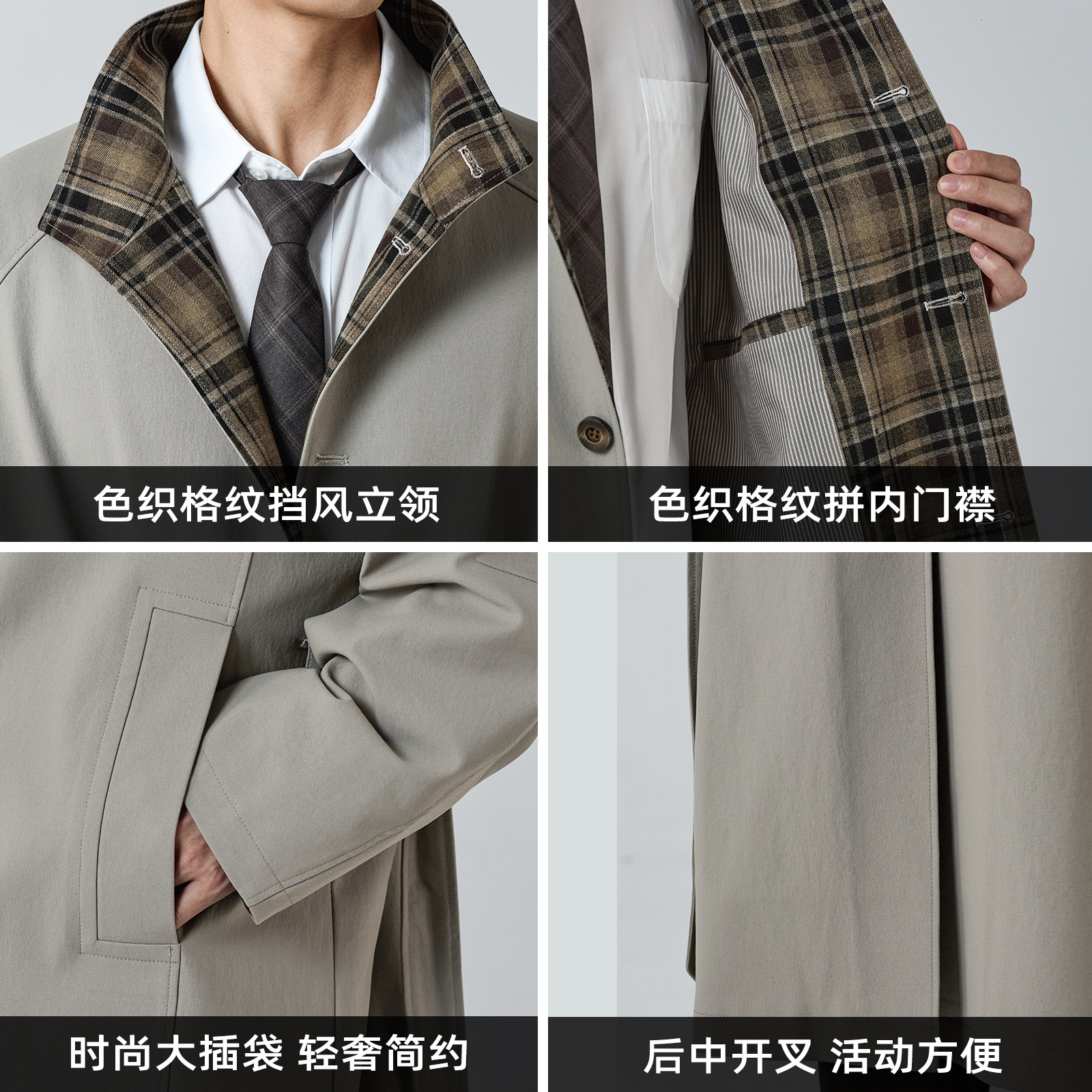 淘宝海上公路格纹拼接立领风衣男士25年秋季中长款撞色廓形松弛感外套