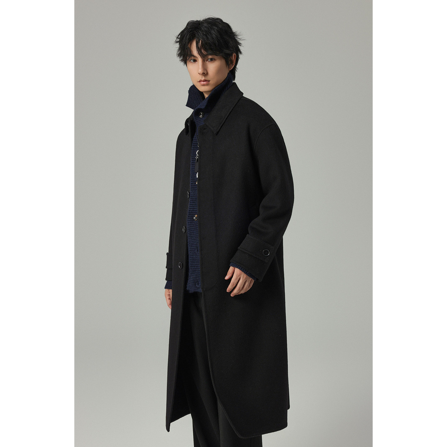 天猫【储格】双面羊毛呢大衣男中长款过膝翻领暗扣风衣冬季落肩外套
