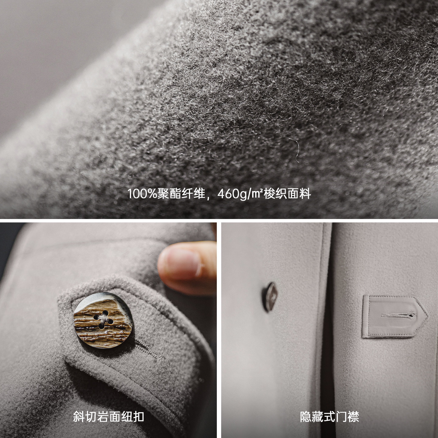 【风衣式】太平鸟男装羊毛呢大衣男长款年冬新款双面呢外套
