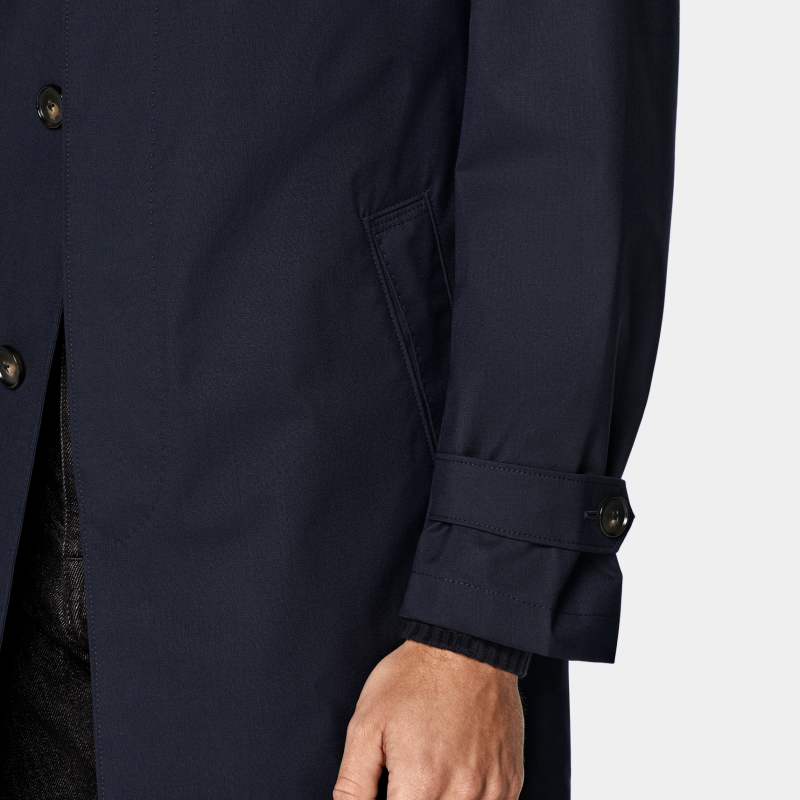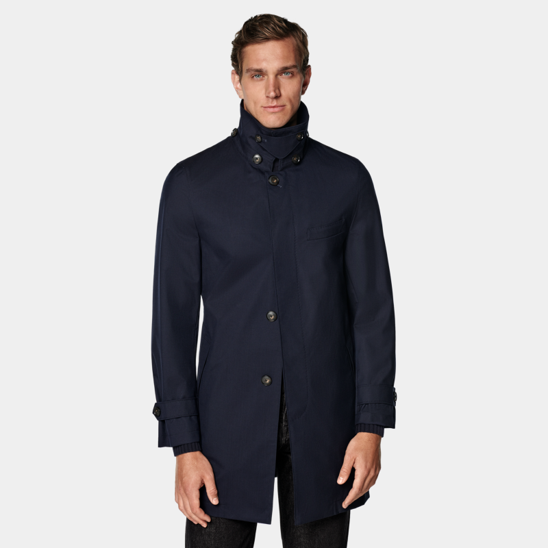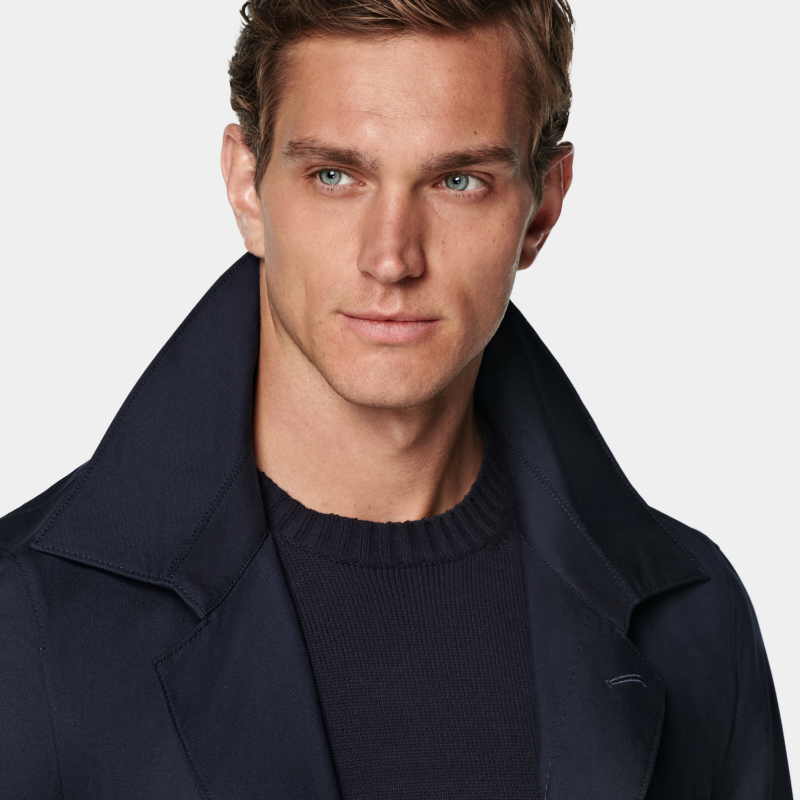 SUITSUPPLY藏青色羊毛休闲男士风衣外套,以优质羊毛面料打造,质感挺括且保暖舒适。经典藏青色百搭耐看,适合多种场合穿搭。宽松休闲的版型设计,兼顾时尚与舒适,轻松驾驭日常通勤或周末出行。利落剪裁搭配简约翻领与单排扣门襟,细节精致,彰显低调品位。袖口与下摆做工考究,提升整体质感。无论是搭配西装裤、牛仔裤,还是内搭针织衫,都能轻松打造儒雅随性的都市型男风格。SUITSUPPLY一贯注重工艺与细节,这款风衣兼具实用性与时尚感,是男士衣橱中不可或缺的百搭单品。