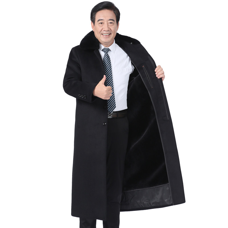 淘宝老爷车中老年人羊绒大衣男长款过膝加厚棉服爸爸冬装风衣毛呢外套
