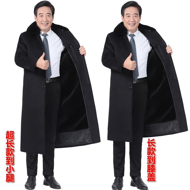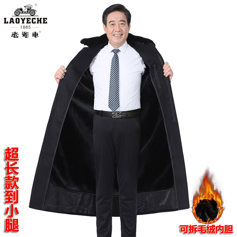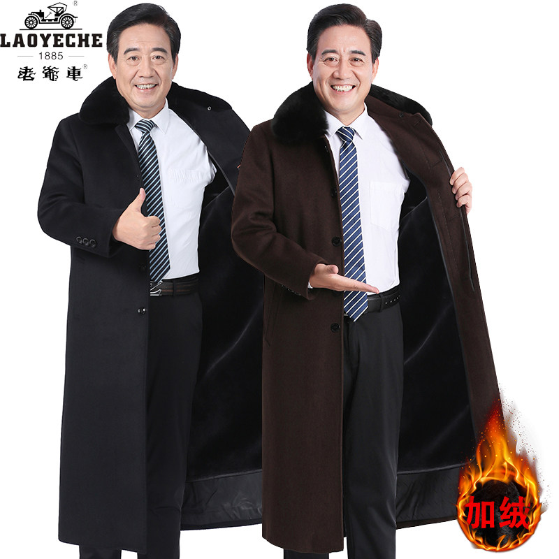 淘老爷车羊绒大衣男中老年长款过膝羽绒内胆爸爸装加厚毛呢风衣外套