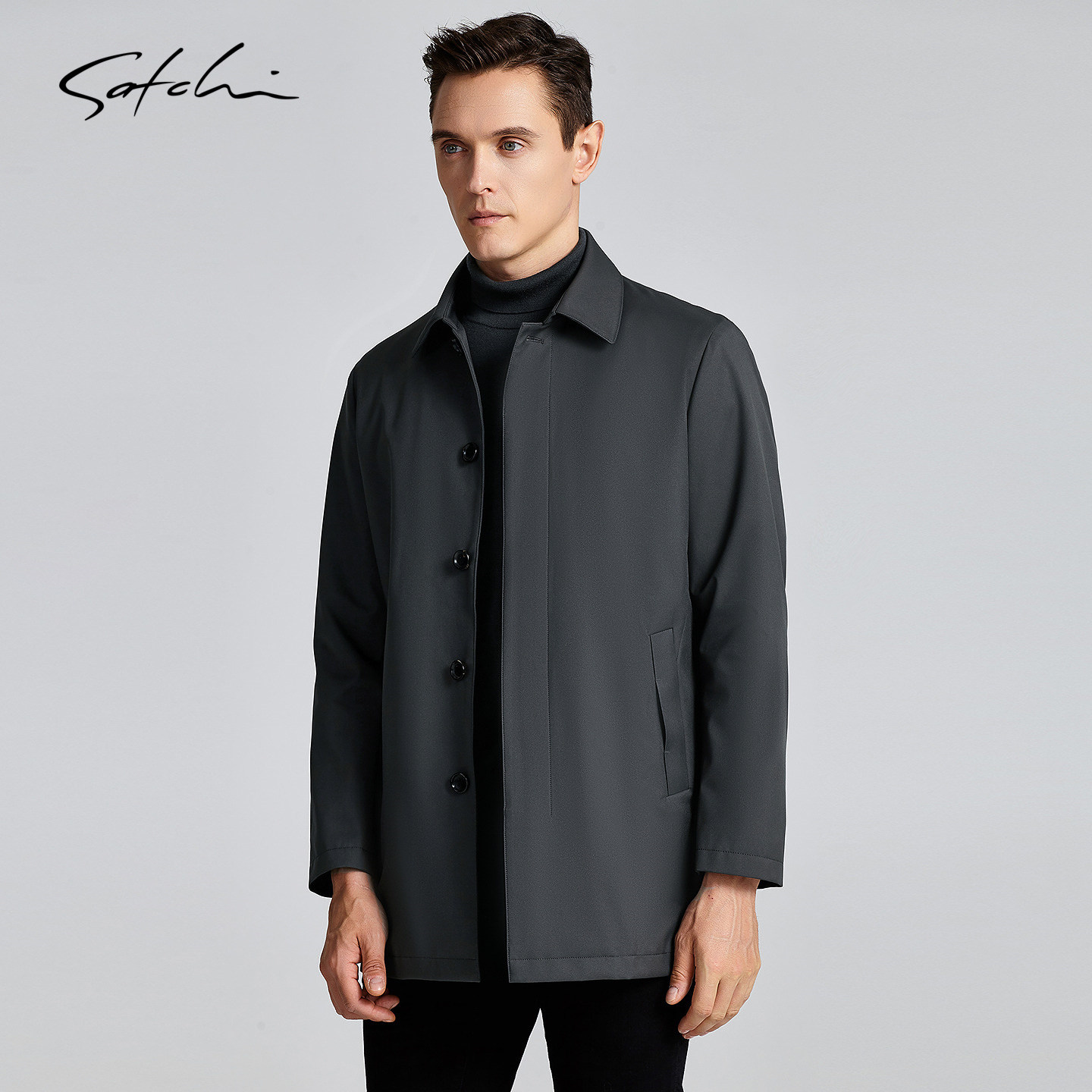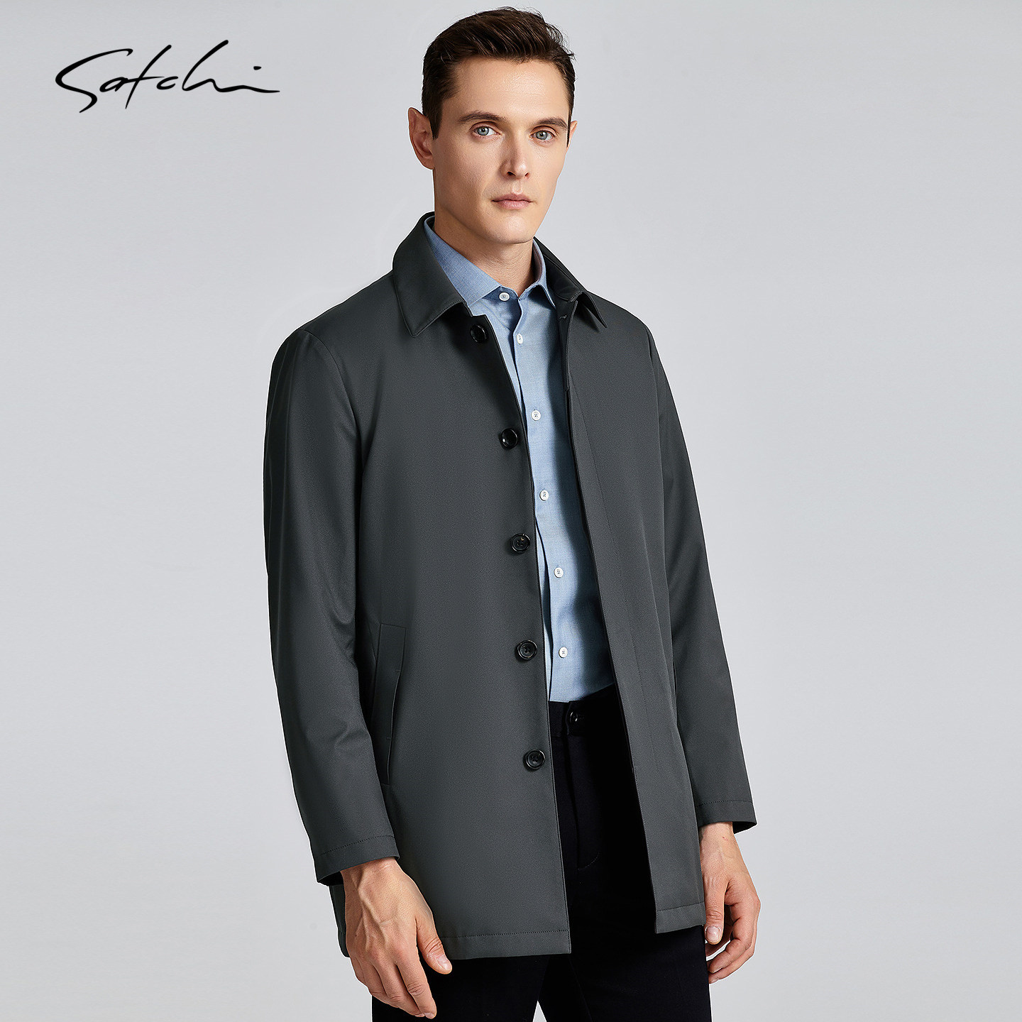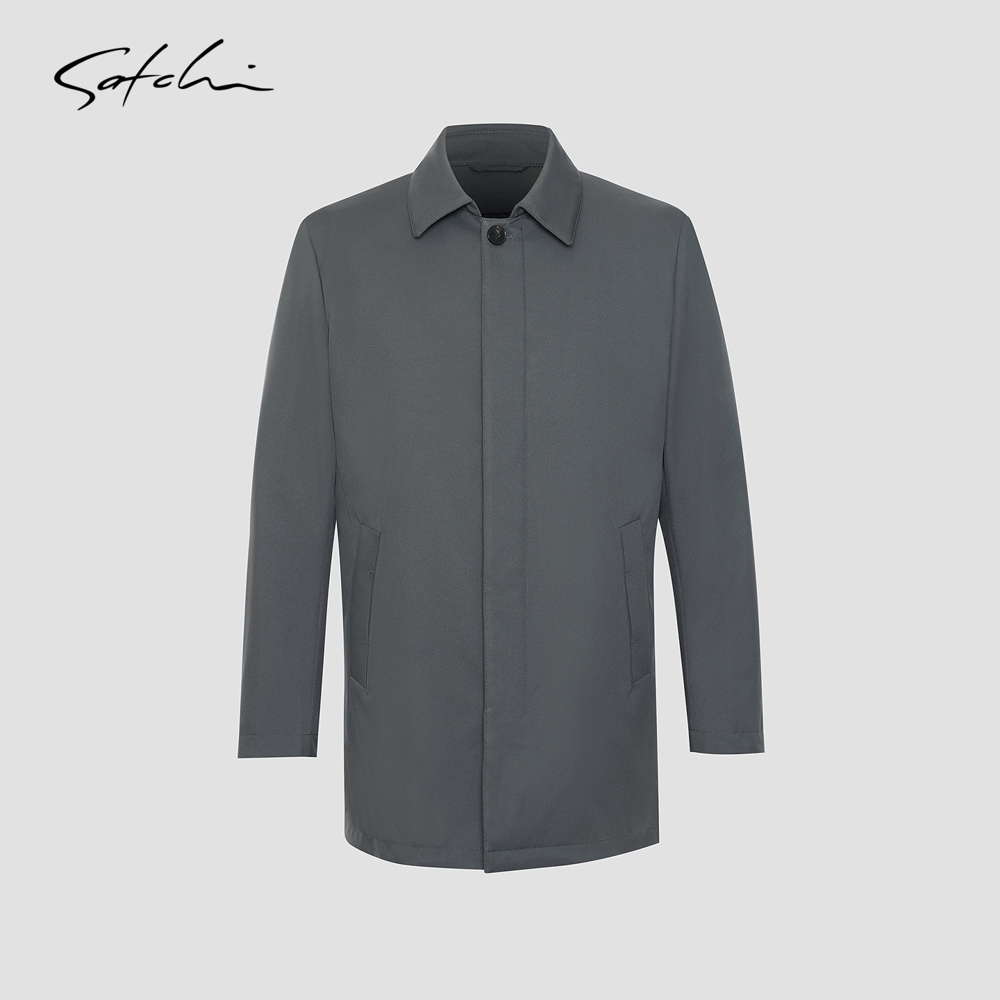 天猫[可拆卸鸭绒内胆]SATCHI沙驰男装男士羽绒风衣冬季商务行政外套厚