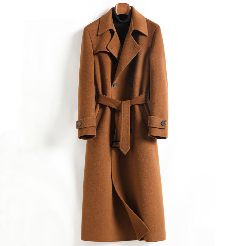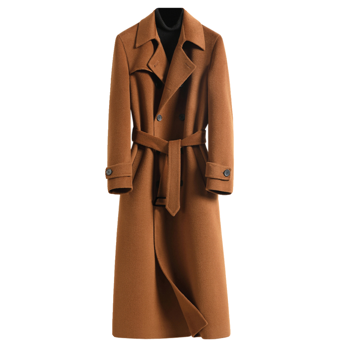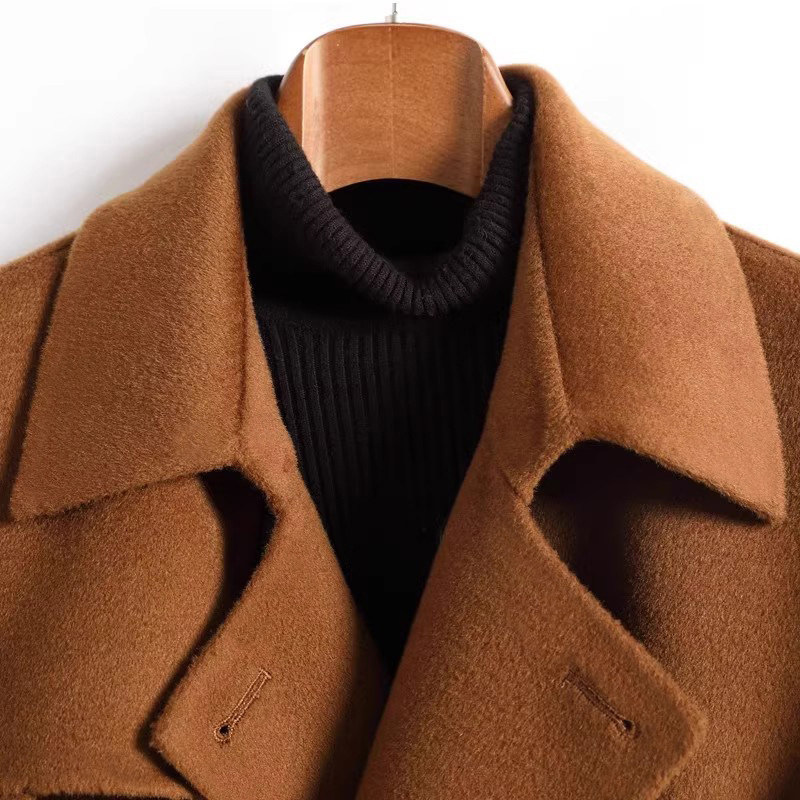 秋冬双面绵羊绒大衣男宽松落肩双排扣羊毛呢子外套反季中长款风衣
