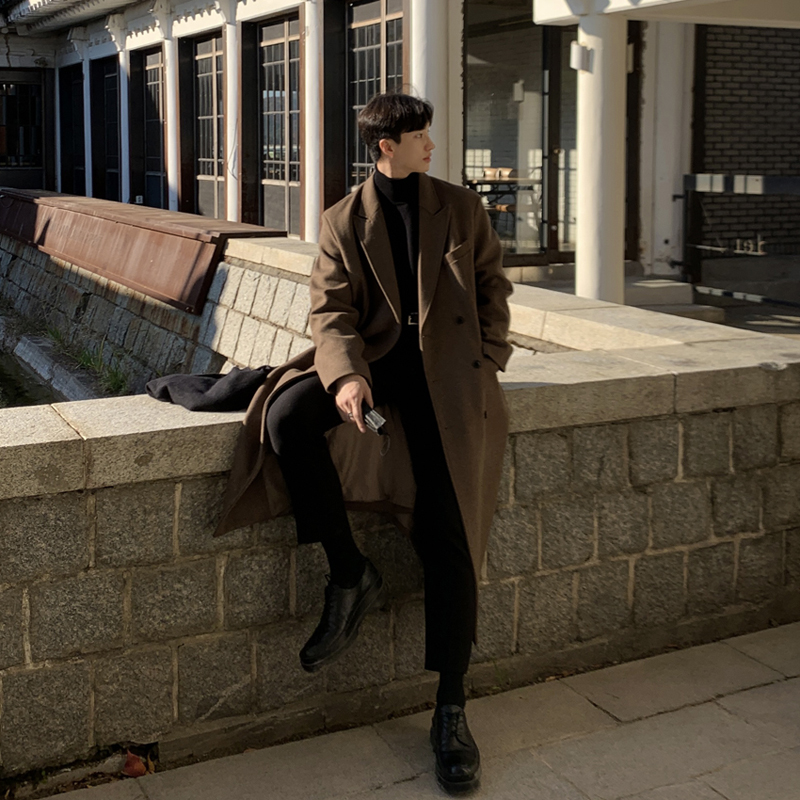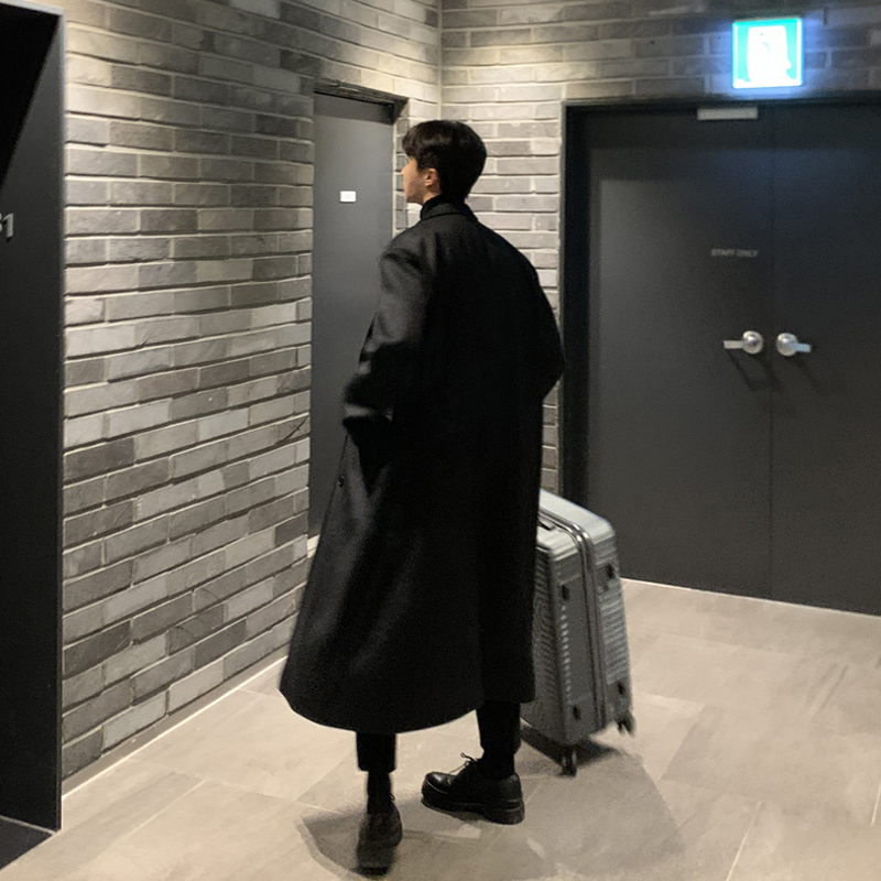 淘宝毛呢大衣男过膝秋冬风衣韩版英伦风高级感长款宽松高个子羊绒外套
