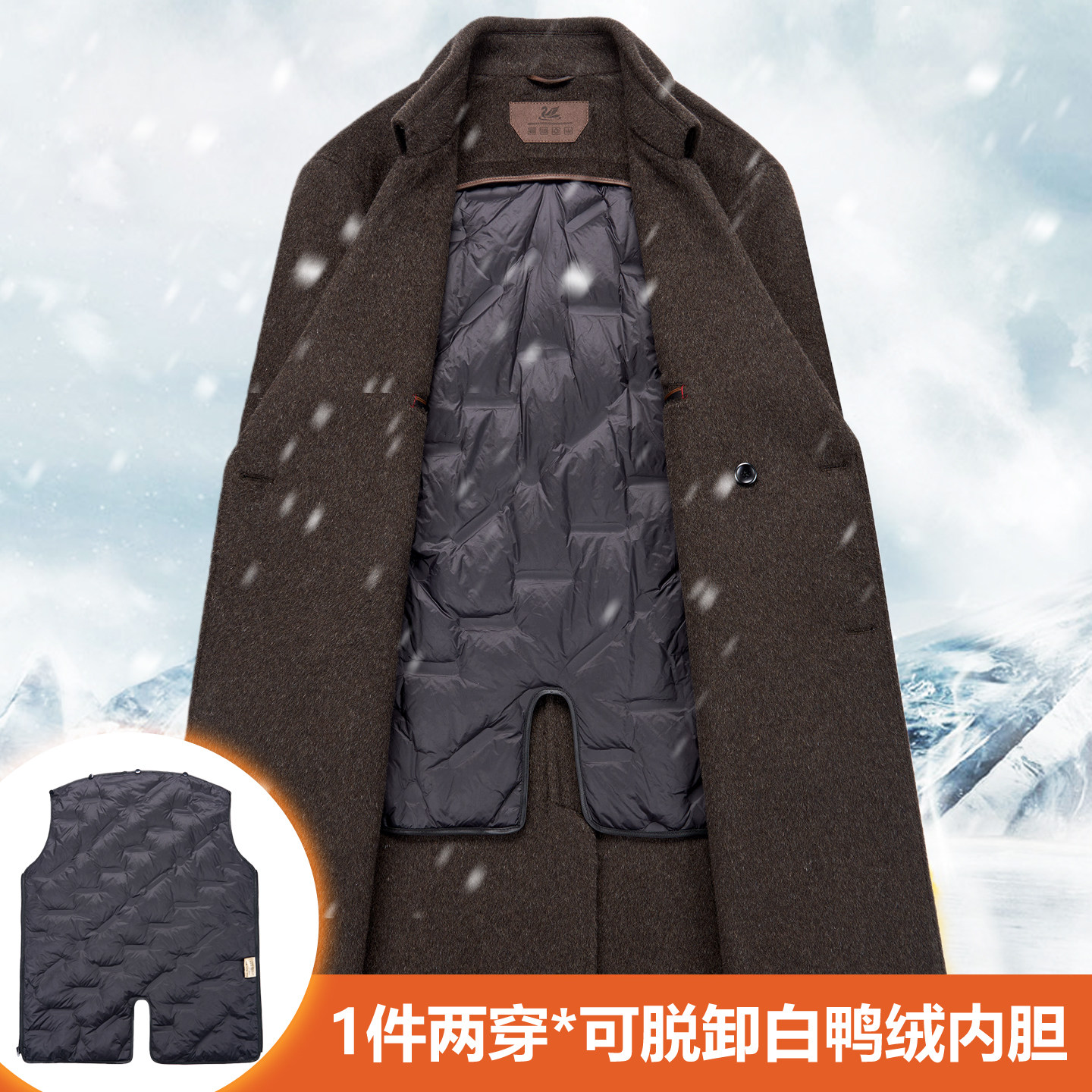 淘老爷车羊绒大衣男中老年长款过膝羽绒内胆爸爸装加厚毛呢风衣外套