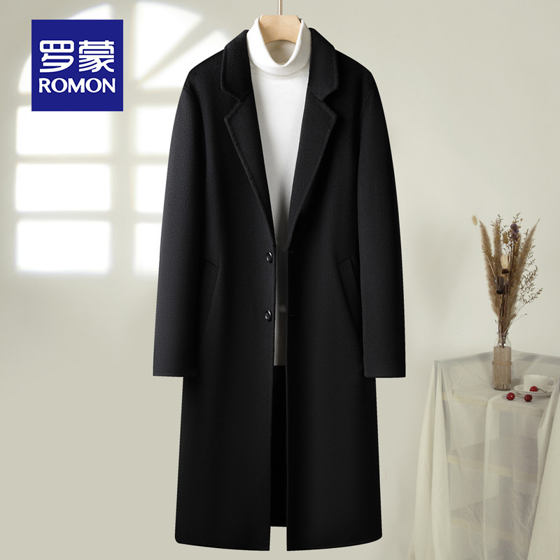 淘宝罗蒙法式双面呢羊绒大衣男士秋冬新款单排扣休闲长款羊毛呢风衣