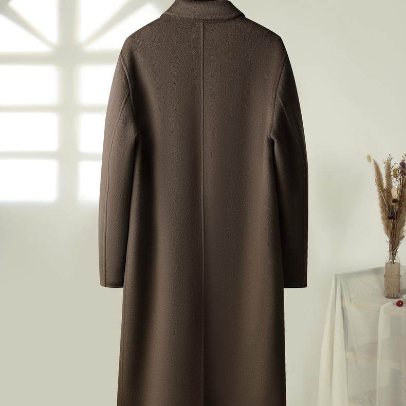 淘秋冬双面绵羊绒大衣男宽松落肩双排扣羊毛呢子外套反季中长款风衣