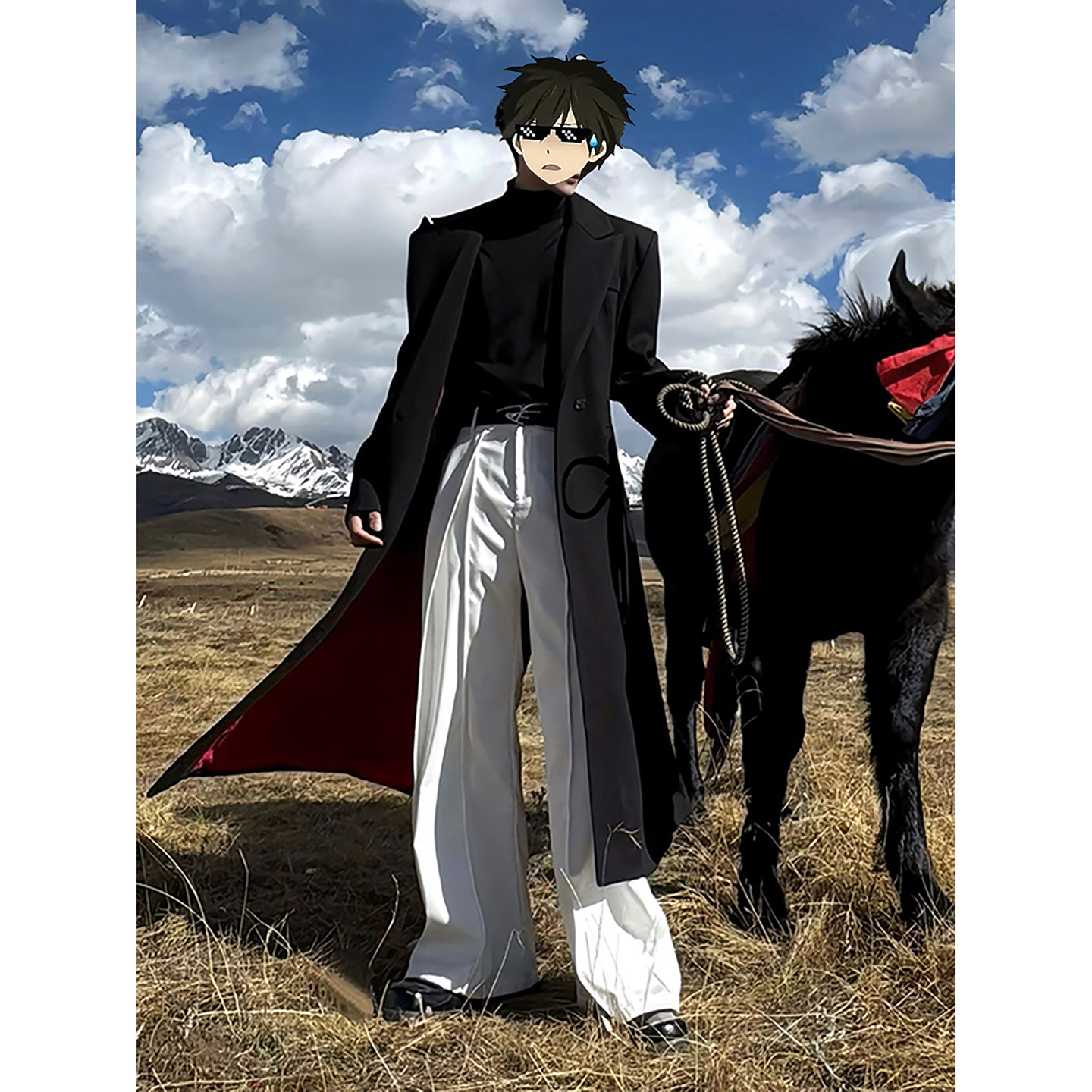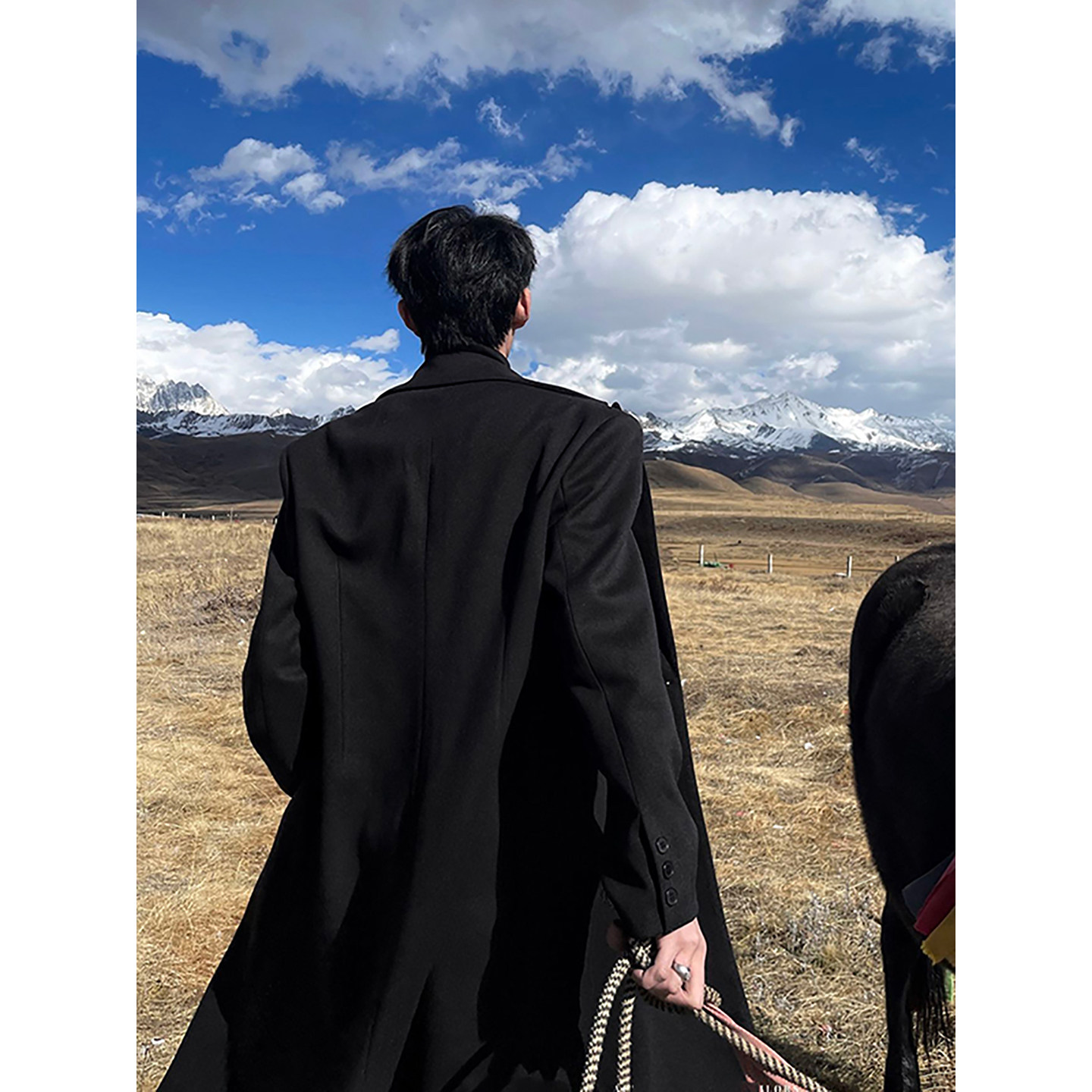 天猫黑色红内教父风毛呢大衣男冬季高级感痞帅垫肩西装外套克苏鲁风衣