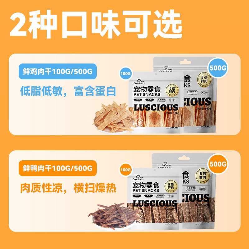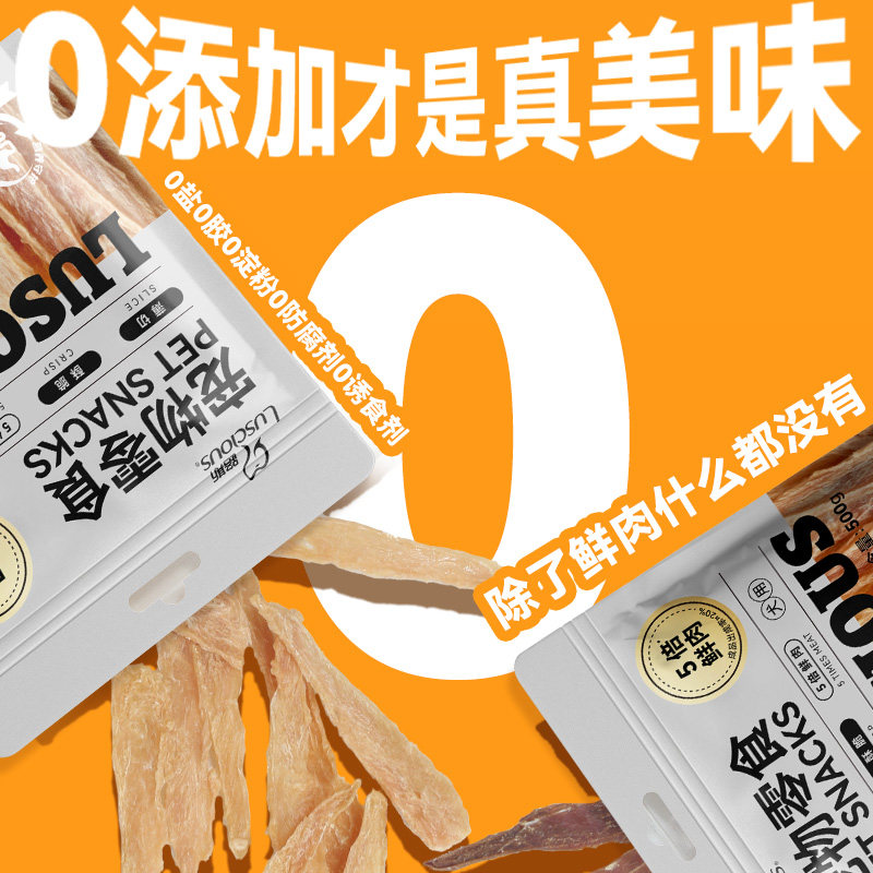 天猫路斯狗狗零食鸡胸肉干鸭胸成犬幼犬磨牙棒小型犬猫洁齿非冻干宠物