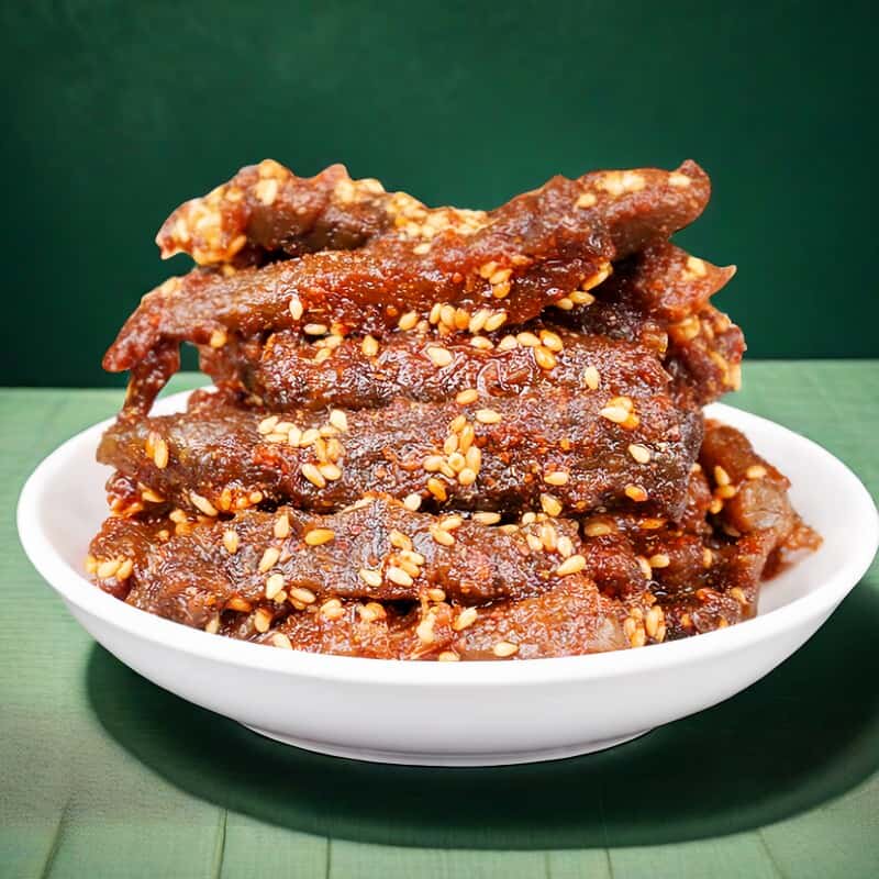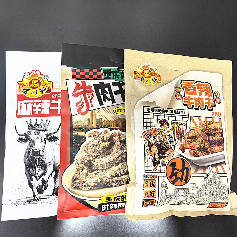 正宗重庆石柱老川江牛肉干,源自巴蜀传统工艺,精选优质黄牛肉,经秘制腌制、古法烘烤而成。每片牛肉干纹理清晰、肉质紧实,口感醇厚有嚼劲,不添加防腐剂,天然健康。特调五香与麻辣双味,五香味浓郁悠长,麻辣味劲爽过瘾,层次丰富,回味无穷。500克大包装,分量十足,是居家休闲、旅行办公、佐餐下酒的绝佳零食。无论是追剧、聚会还是馈赠亲友,老川江牛肉干都能满足你对地道川味小吃的期待,一口入魂,辣得过瘾,香得纯粹,真正体现重庆江湖风味,是不可错过的四川特色即食美味。