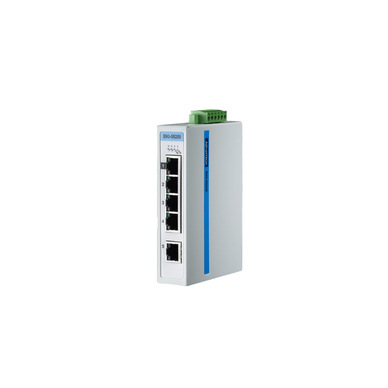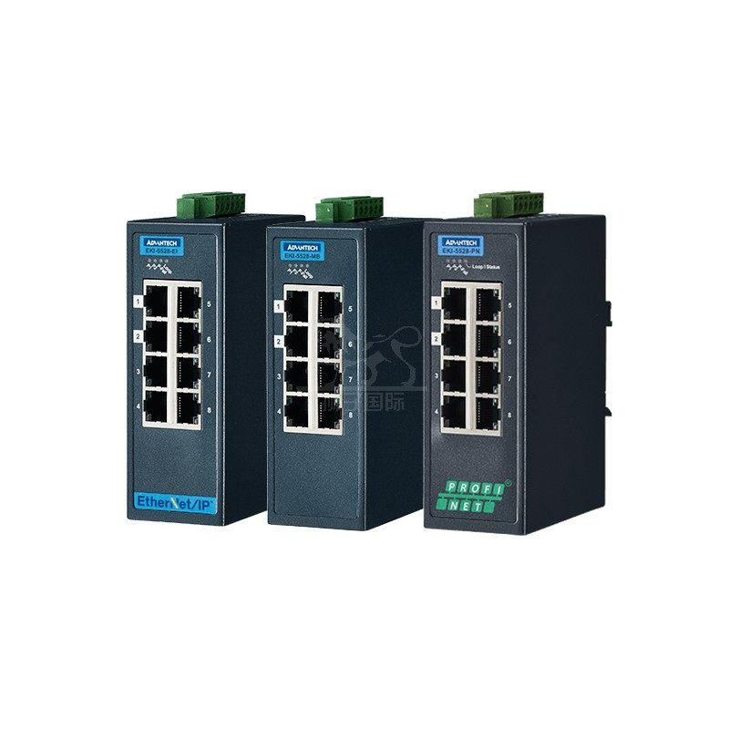 研华EKI-5528I系列工业以太网交换机(包括EKI-5528I-EI、EKI-5528I-MB/PN型号)是一款专为严苛工业环境设计的8口非网管型交换机。产品支持宽温工作(-40℃至75℃),具备高抗干扰能力,适用于轨道交通、智能制造、能源等恶劣工况场景。采用坚固金属外壳,支持DIN导轨或壁挂安装,提供8个10/100Mbps自适应电口,确保稳定可靠的网络连接。该系列具备IP30防护等级,支持冗余电源输入(部分型号),保障系统持续运行。符合EN50155、EN50121等工业标准,具备优异的电磁兼容性与抗震性能,是工业自动化网络部署的理想选择,助力实现高效、稳定的数据传输。
