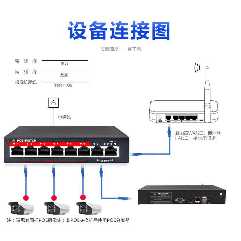淘宝48VPOE国标网线供电智能AI交换机百兆 4/6/8/16/24口监控专用千兆