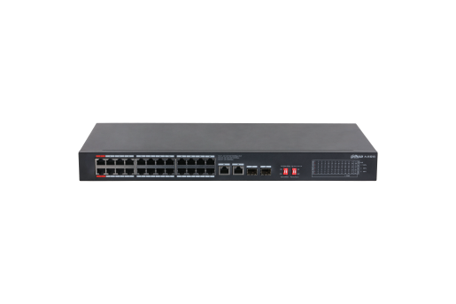 大华DH-S3000C-24GT2GT2GF-240是一款24口二层非管理型全千兆PoE交换机,具备24个千兆PoE电口、2个千兆电口和2个千兆光口,总供电功率高达240W,支持IEEE 802.3af/at标准,可为IP摄像头、无线AP等终端设备稳定供电与数据传输。该交换机即插即用,无需配置,部署简便,适用于中小型企业、园区监控、楼宇安防等场景。采用金属外壳设计,具备良好的散热性能与抗干扰能力,支持桌面或机架安装,运行稳定可靠,满足高带宽、低功耗的网络接入需求,是构建高效PoE网络的理想选择。