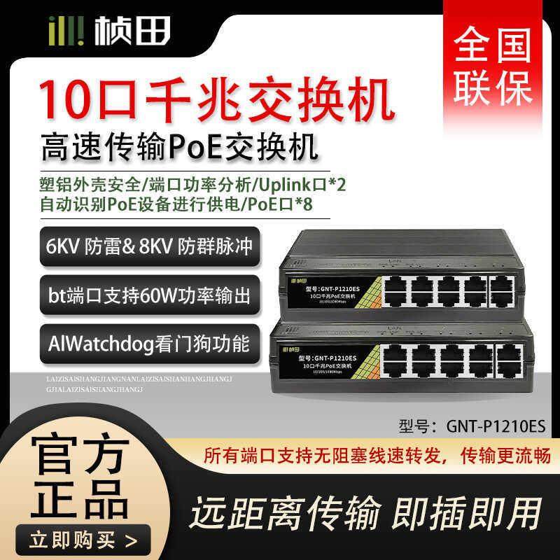 淘宝桢田5 8 1628口国标48V监控远距离POE供电千百兆防雷交换机级联宝