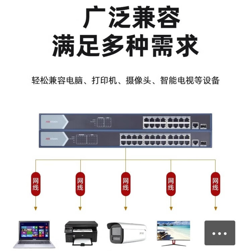 淘宝海康威视 5/8/16/24口交换机监控专用全千兆百兆家用路由器分流器