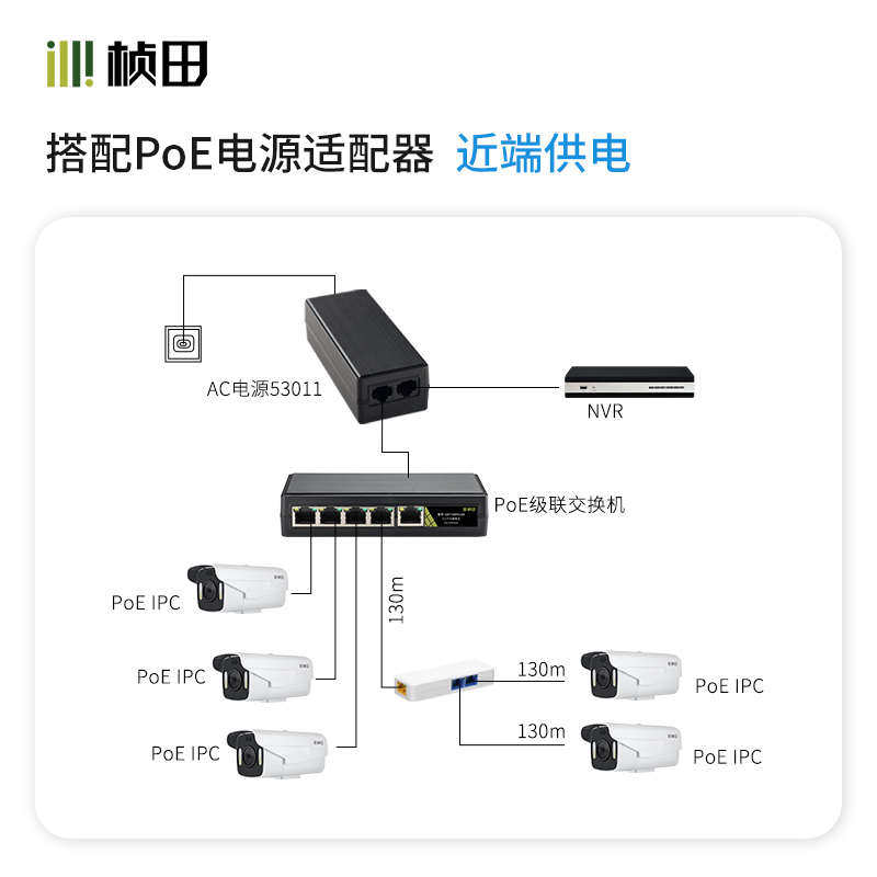 淘宝桢田无源1分4级联宝千兆poe中继器室外防水5口受电交换机GNT69P