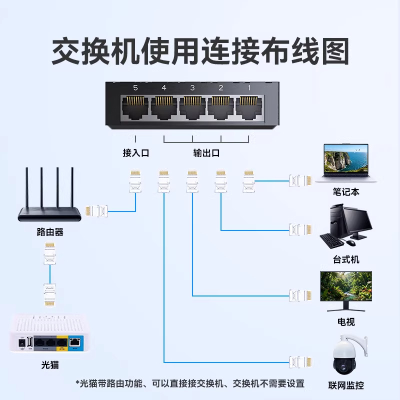 天猫千兆交换机5/6/8/10口万兆2.5G电口分线器poe供电网络扩展端口光猫路由器企业家用宿舍通用百兆集线器监控