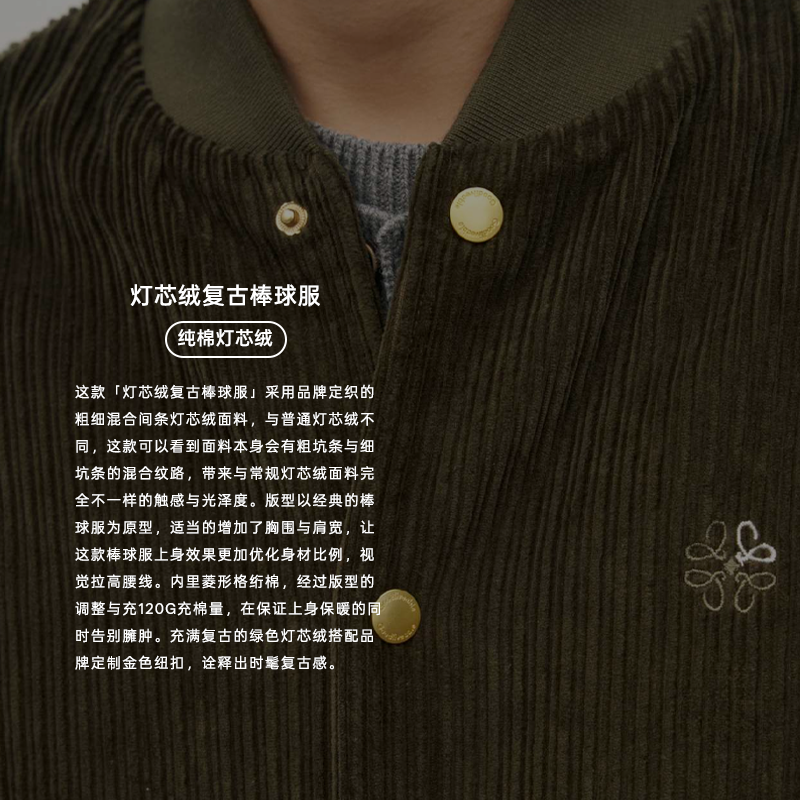 淘宝GOODLIVEABLE 灯芯绒美式刺绣百搭棒球服外套男夹棉加厚休闲外套