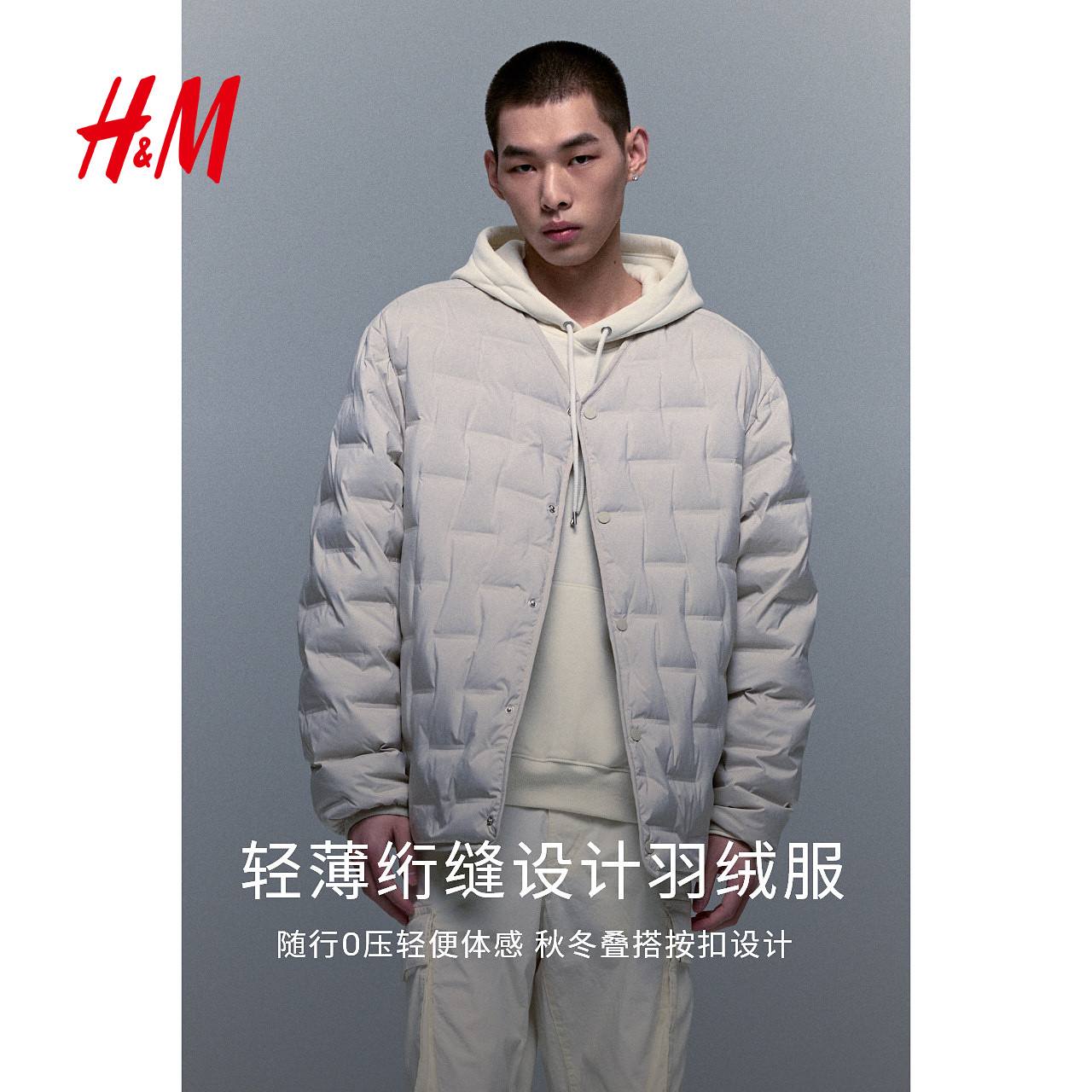 天猫HM男装羽绒服冬季户外运动防风疏水女装轻薄防寒服外套1238584