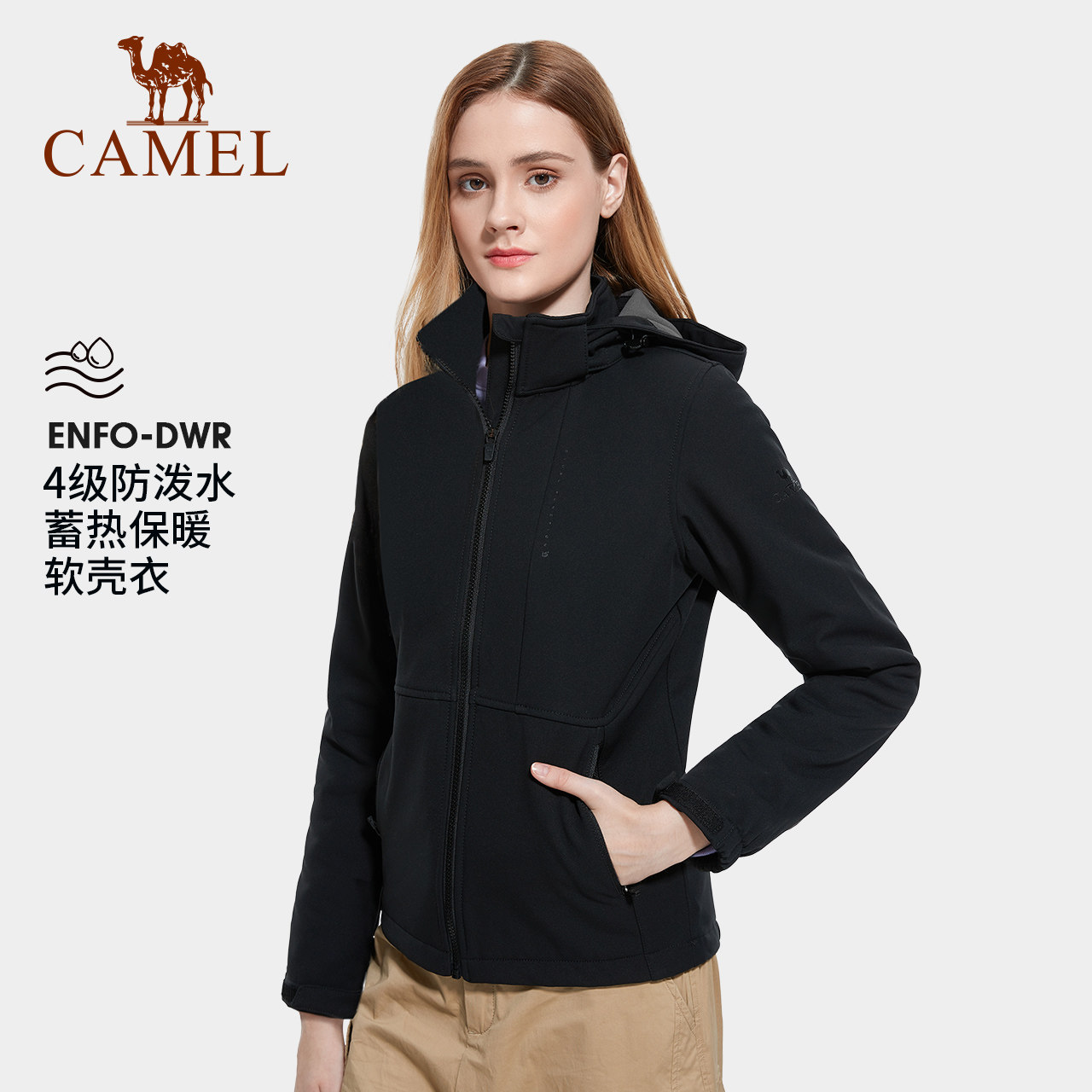 [岩壳Evo]骆驼男装夹克户外冲锋软壳衣防风防水运动登山服外套女