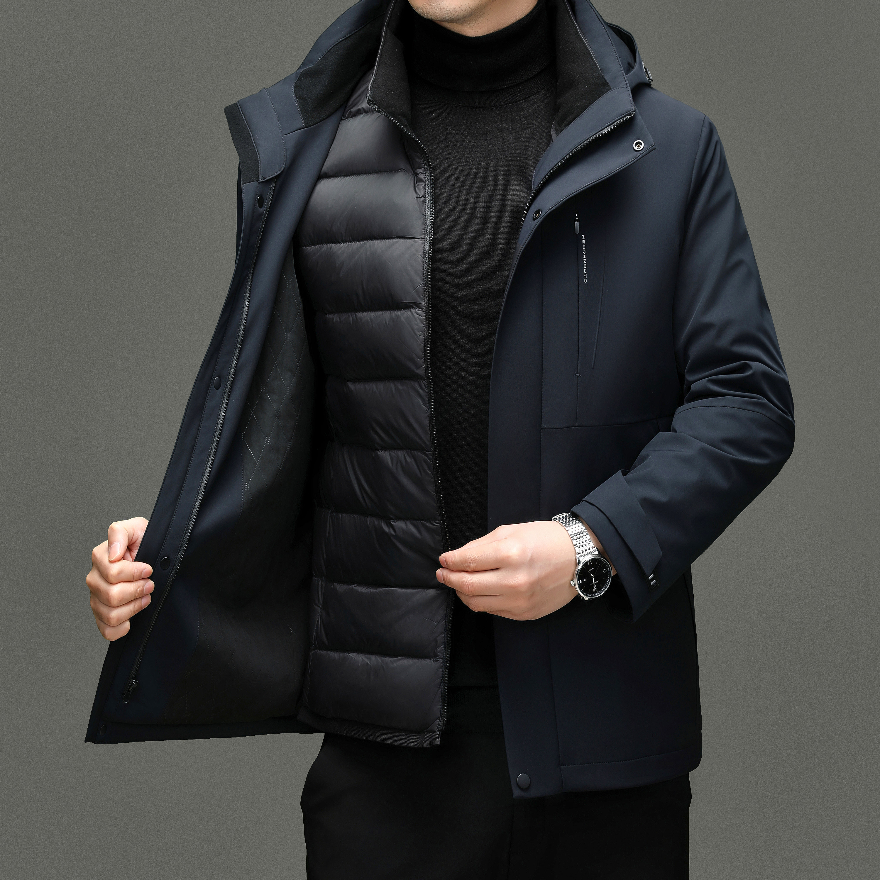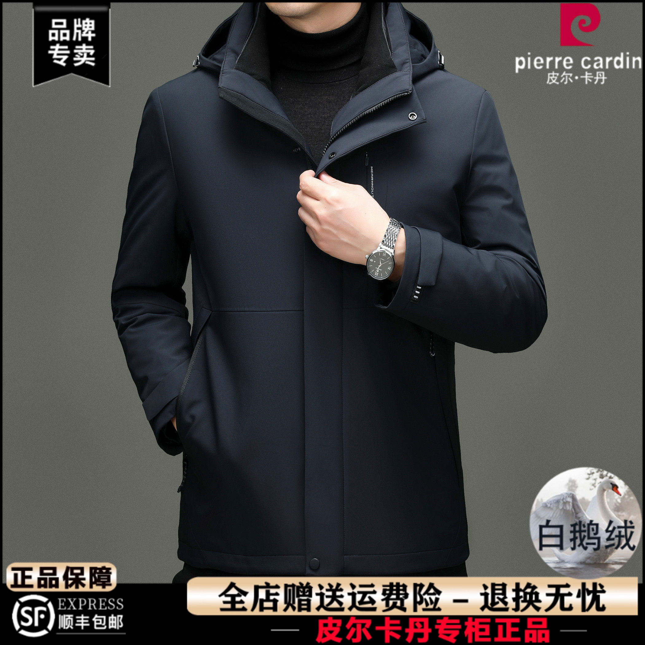 淘宝皮尔卡丹正品鹅绒羽绒服男冬季新款可脱卸内胆连帽防寒保暖外套男
