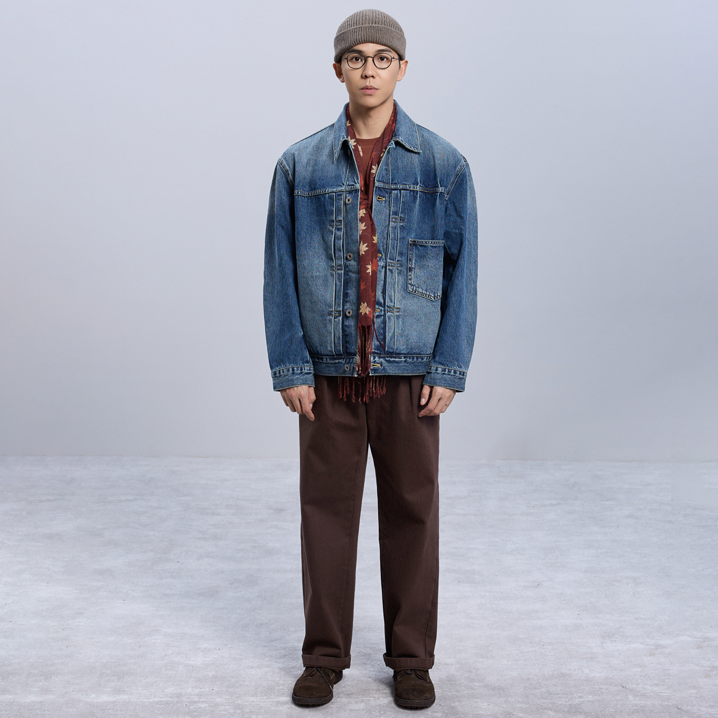 Type1水洗牛仔夹克精选13.5oz日本冈山宽幅丹宁布,采用传统手工靛蓝染色工艺,色泽深邃富有层次,经水洗处理后质感柔软,贴合秋冬季节穿着需求。经典Type1版型设计简约利落,胸前单口袋实用美观,金属纽扣细节精致,兼顾复古韵味与现代百搭性。无论是搭配毛衣、卫衣还是衬衫,都能轻松驾驭休闲或轻商务风格。冈山优质面料耐磨耐穿,随时间推移呈现独特落色效果,彰显个性品味。这款夹克不仅是衣橱中的实用单品,更是追求品质与风格的男士秋冬理想之选。