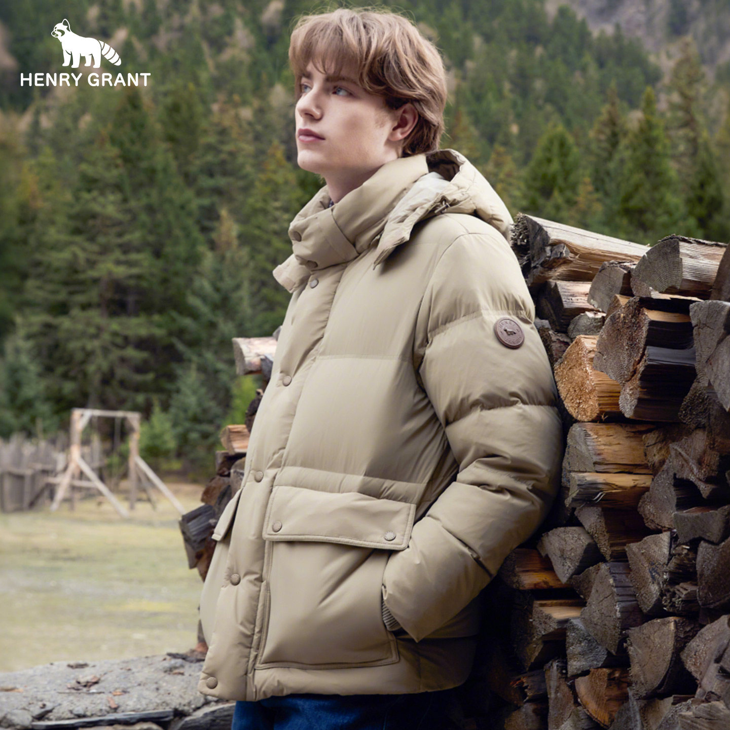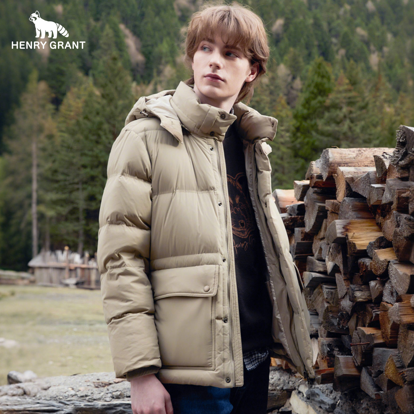 天猫亨利格兰白鸭绒羽绒服男士2025冬季休闲百搭连帽保暖防寒外套上衣