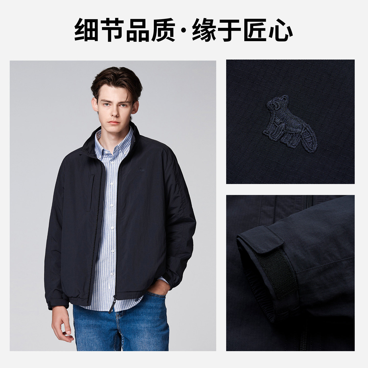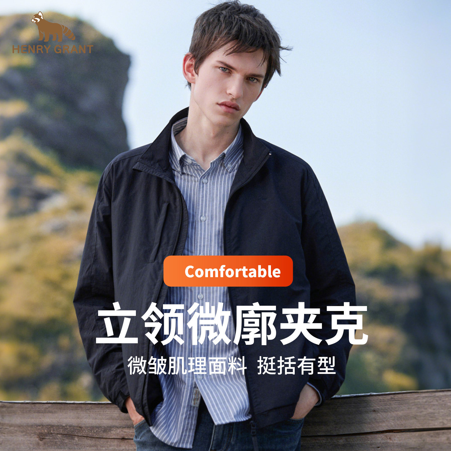 天猫亨利格兰立领微廓肌理感夹克男士2025年秋冬休闲耐磨防风外套上衣