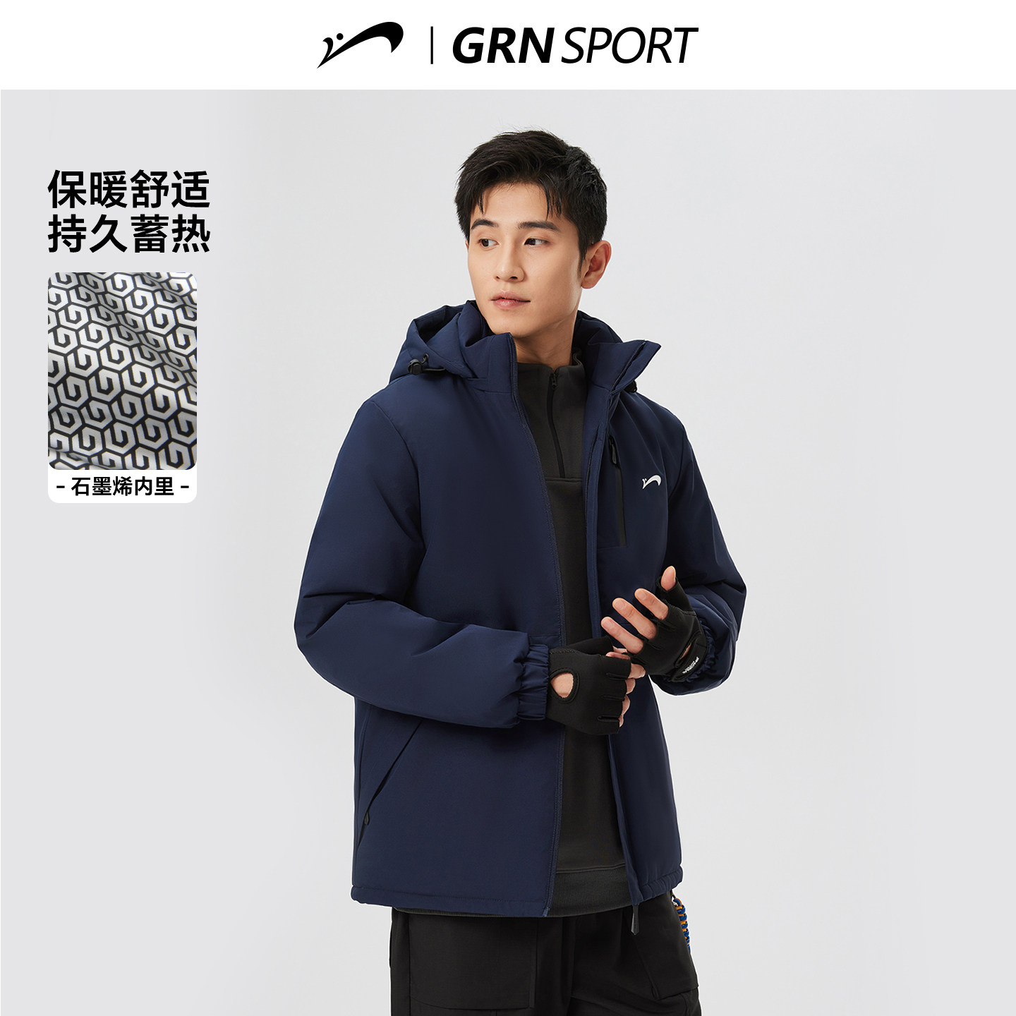 亨利格兰连帽棉服男士2025年秋冬防风御寒摇粒绒外套微阔百搭棉衣
