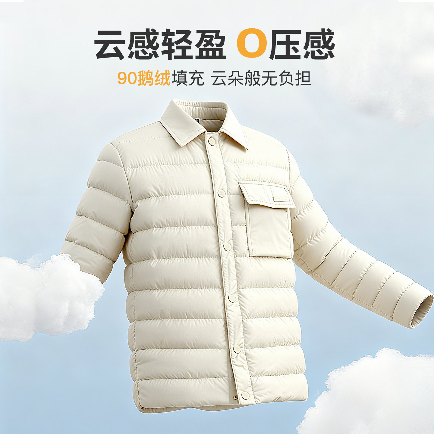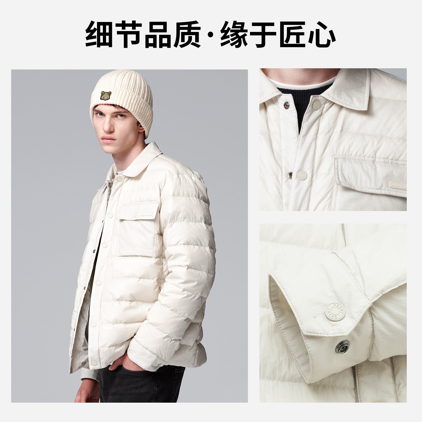 天猫亨利格兰白鹅绒轻羽绒服男士2025冬季新款休闲百搭衬衫领保暖外套