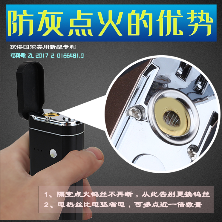 淘充气打火机防风充电男士USB潮流点烟器个性创意刻字老公礼物