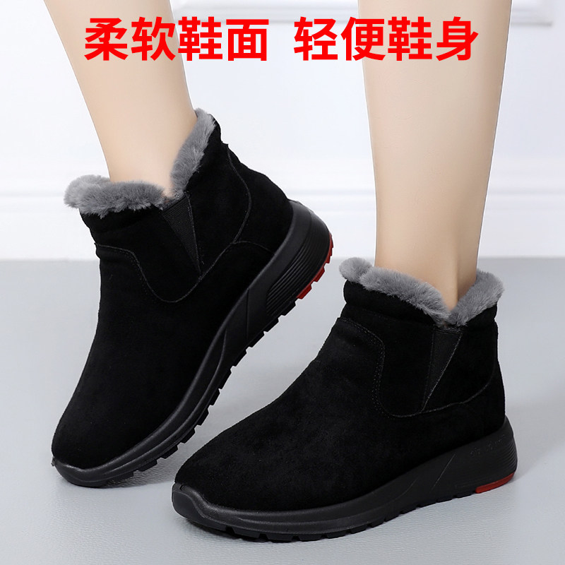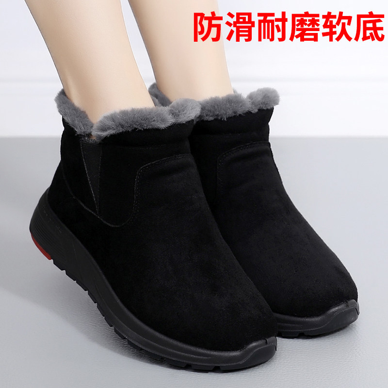 冬季加绒新款女棉鞋软底舒适毛毛鞋休闲时尚雪地靴加厚保暖妈妈鞋