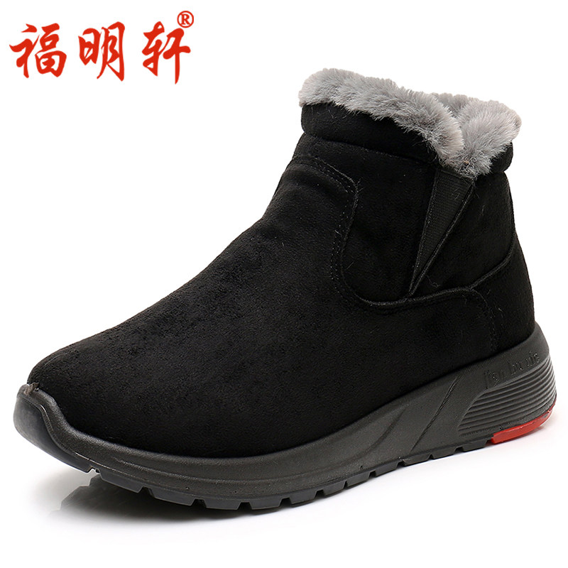 足力健老人鞋正品加绒保暖鞋轻便软底妈妈鞋冬季棉鞋雪地靴防寒鞋