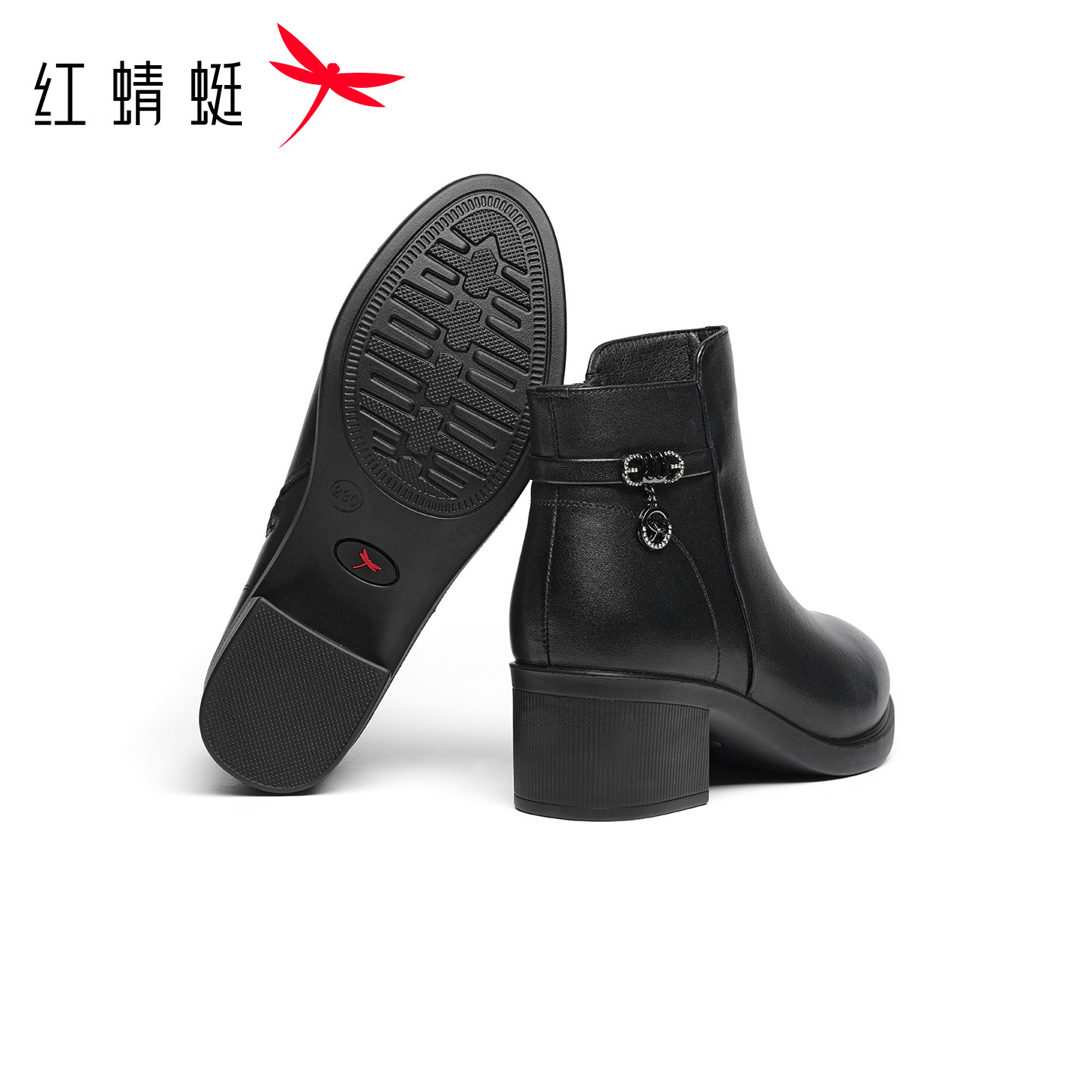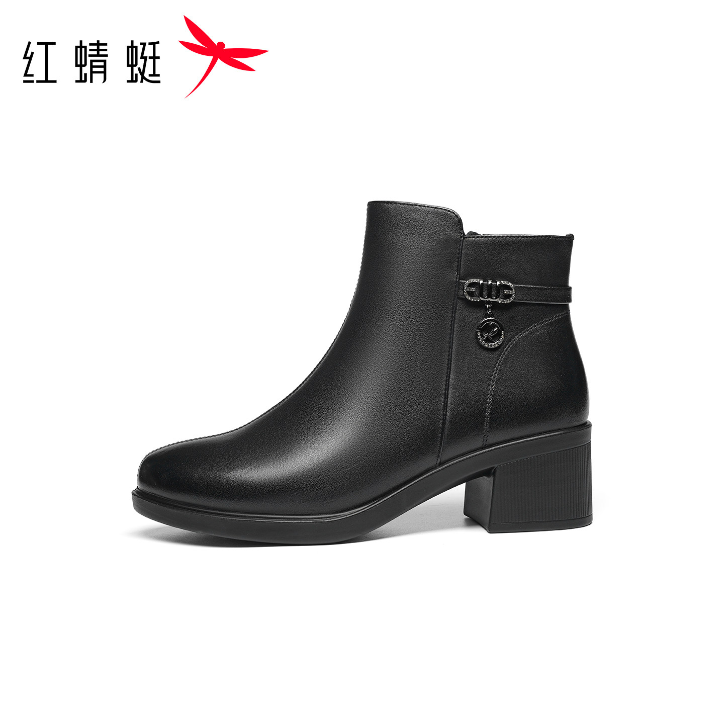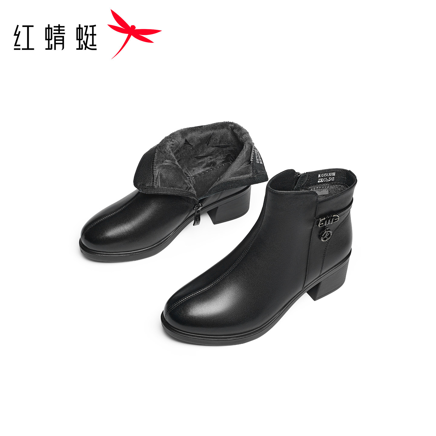 天猫红蜻蜓妈妈靴子2025冬新款女鞋真皮加绒保暖皮鞋短靴中年女士鞋子