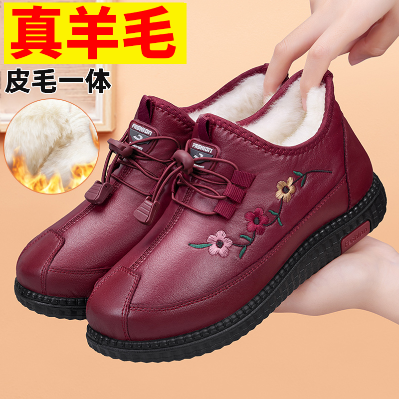 豆豆鞋女冬季加绒毛毛棉鞋妈妈鞋中老年软底舒适一脚蹬老北京布鞋
