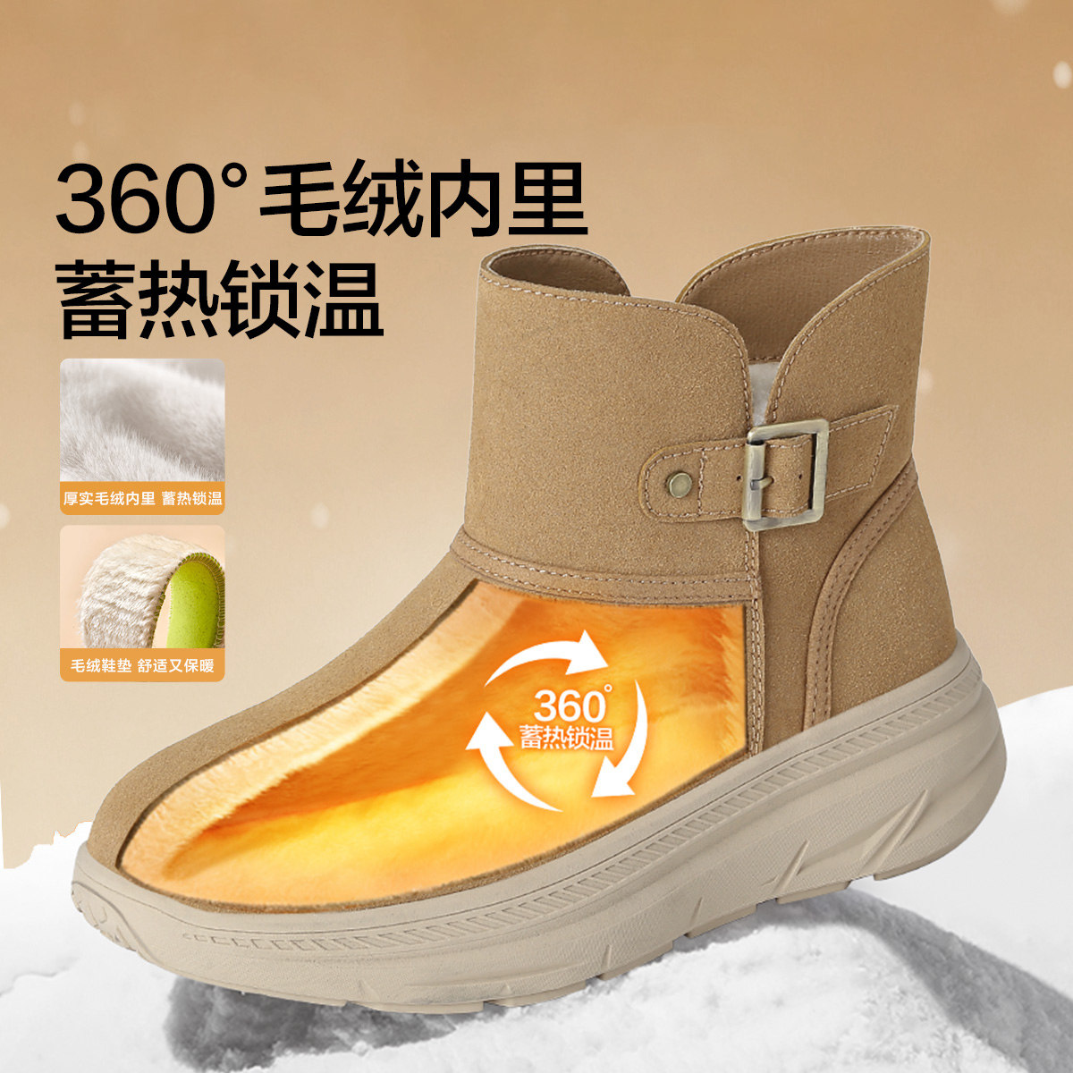 足力健女鞋妈妈雪地靴专为中老年女性冬季保暖设计,采用优质加绒内里,柔软亲肤,持久锁温,有效抵御严寒。短筒版型简约大方,搭配厚底设计,既显高又舒适,减轻足部压力。鞋面采用防水防污材质,易于清洁打理;底部配备防滑橡胶大底,抓地力强,雨雪天气行走更安全。加宽鞋头设计,不挤脚,适合多种脚型。整体轻便耐穿,兼顾保暖性、舒适性与实用性,是妈妈冬季出行的理想选择。无论是日常散步、买菜还是短途出行,足力健雪地靴都能贴心守护双足温暖与安全。