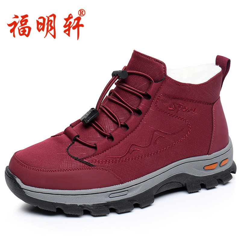 足力健老人鞋正品加绒保暖鞋轻便软底妈妈鞋冬季棉鞋雪地靴防寒鞋