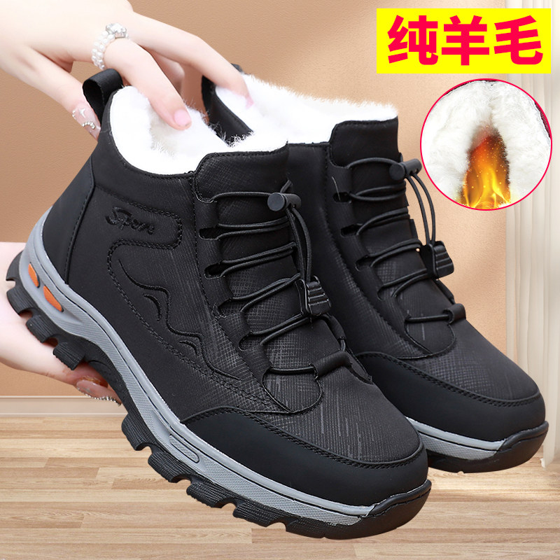 天猫老北京布鞋女羊毛棉鞋老年加绒加厚休闲雪地靴防滑防水老人妈妈鞋