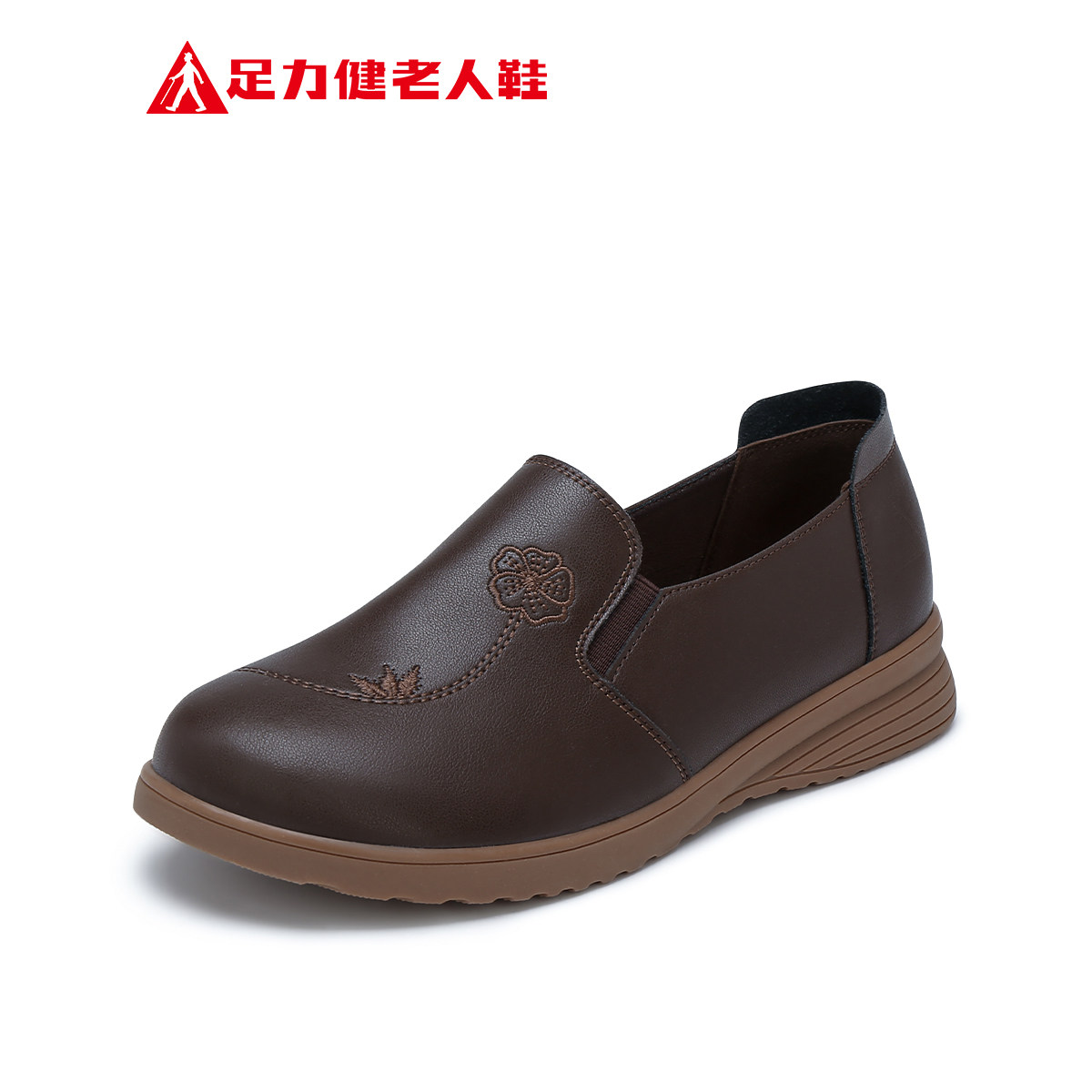 天猫足力健女鞋官方旗舰店妈妈皮鞋软底舒适不累脚乐福鞋春一脚蹬单鞋