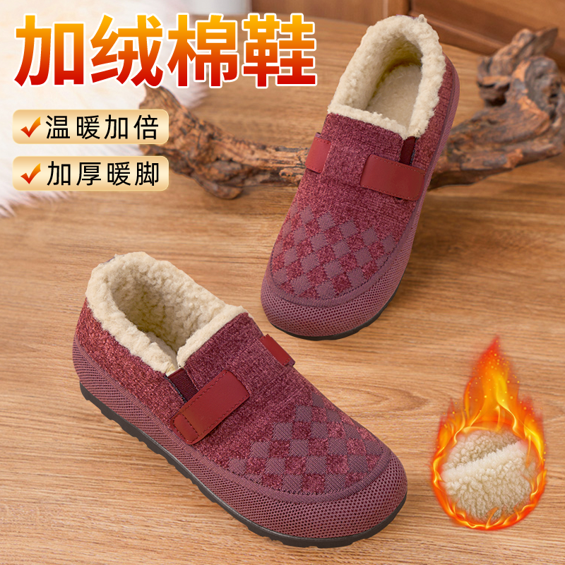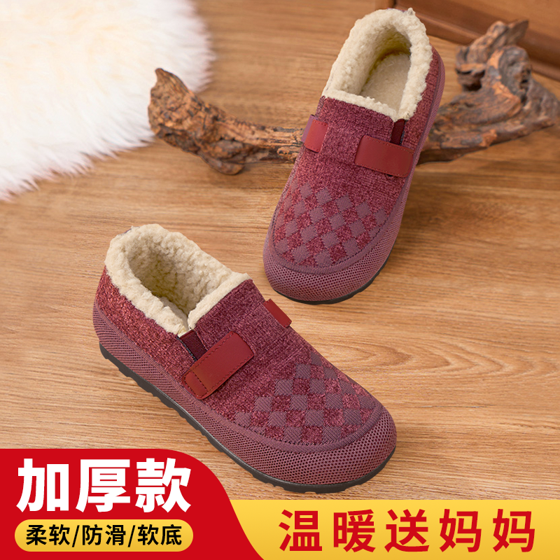 淘新款老北京布鞋冬季加绒女棉鞋保暖中老年妈妈鞋居家羊毛棉拖外穿