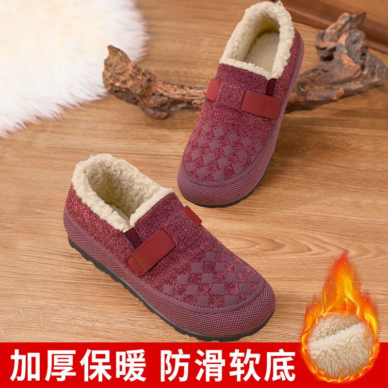 豆豆鞋女冬季加绒毛毛棉鞋妈妈鞋中老年软底舒适一脚蹬老北京布鞋