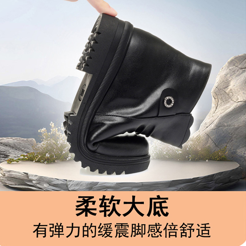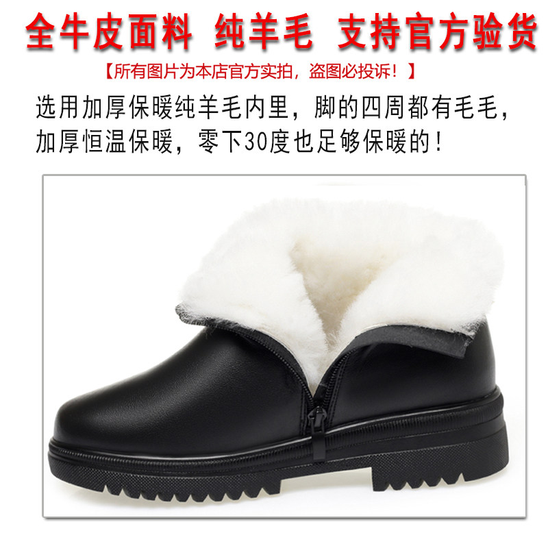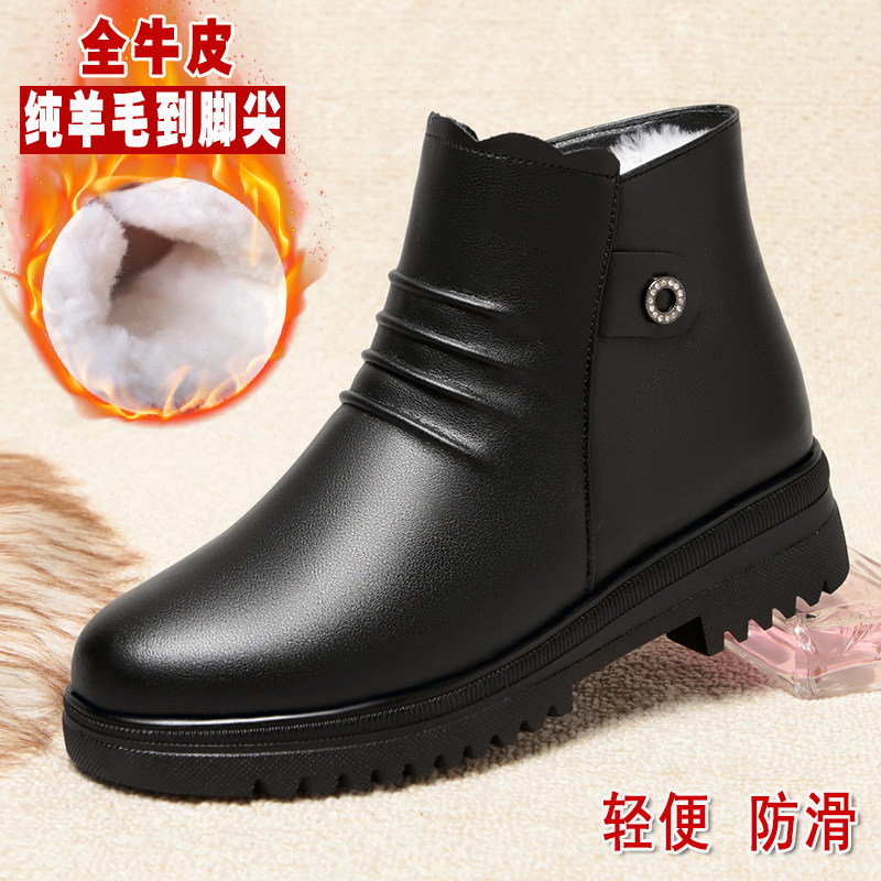 天猫真皮妈妈棉鞋女冬季加厚靴子厚底棉靴防滑羊毛皮鞋中老年老人鞋子