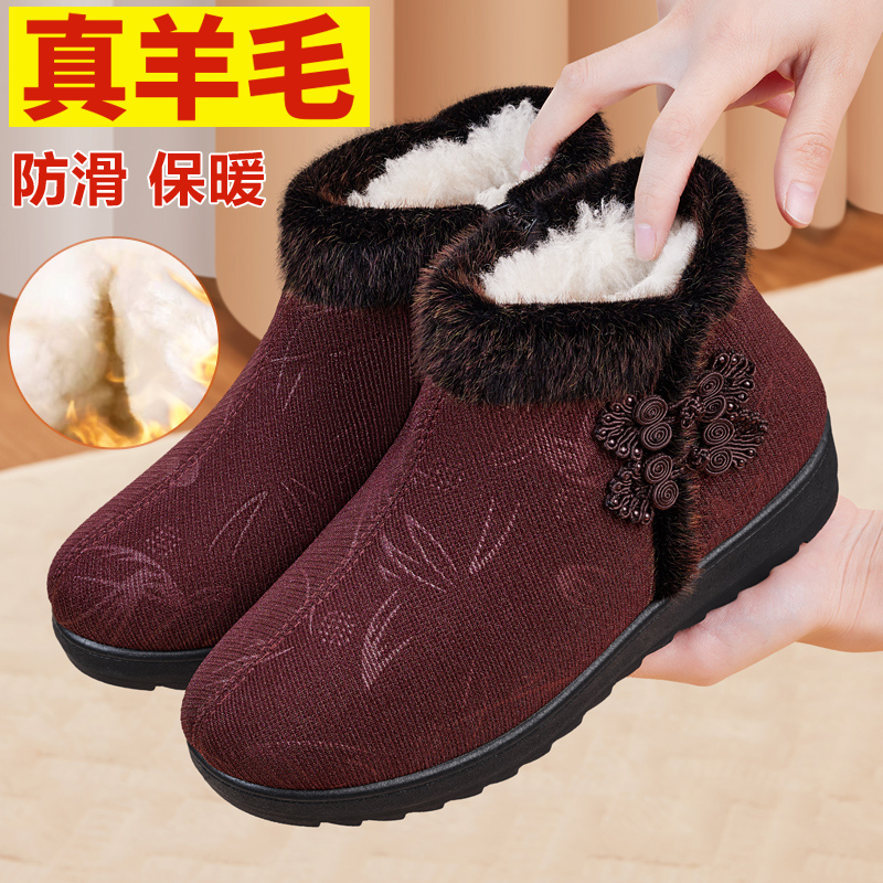 天猫老北京布鞋女冬季羊毛加绒保暖妈妈老人棉鞋防滑老太太软底奶奶鞋